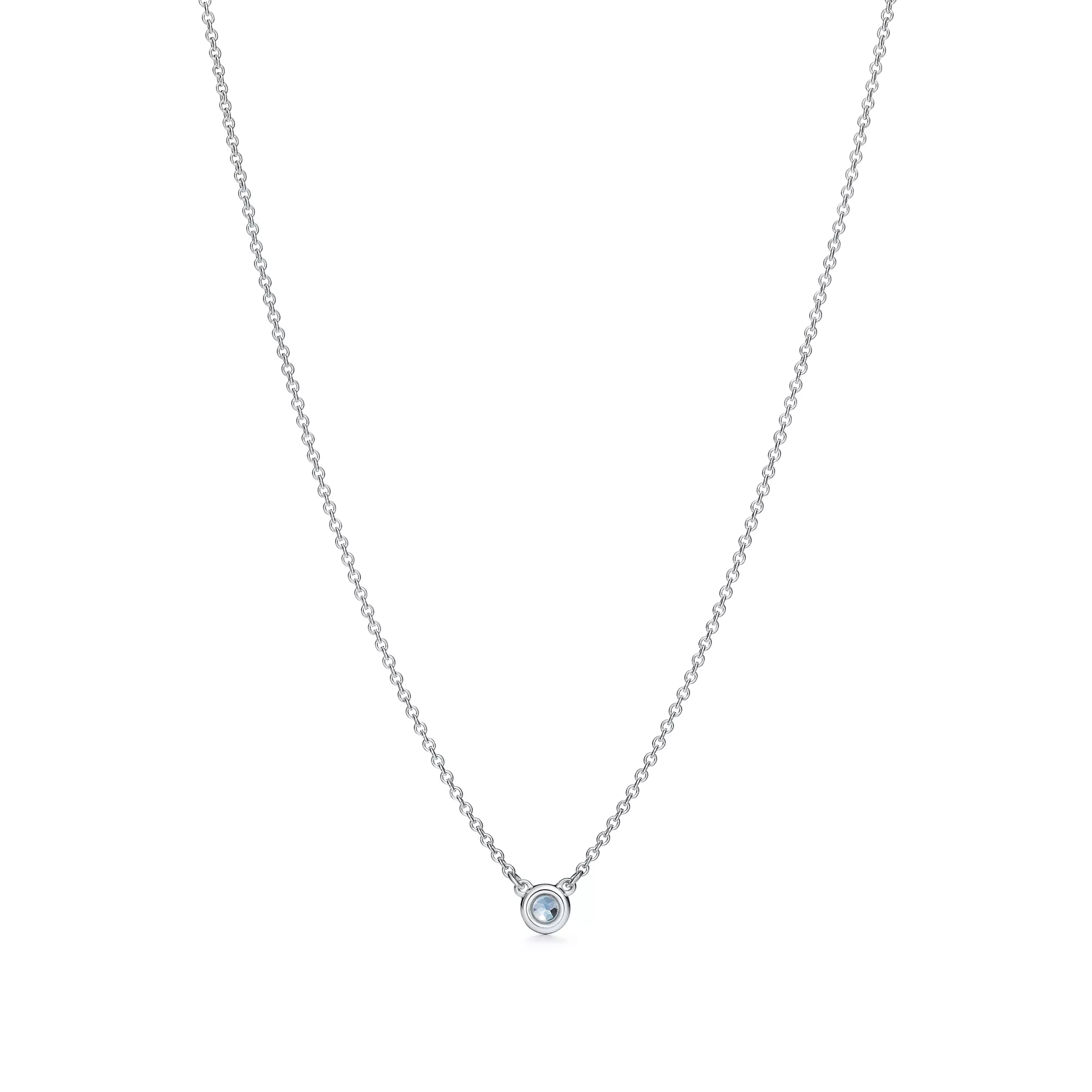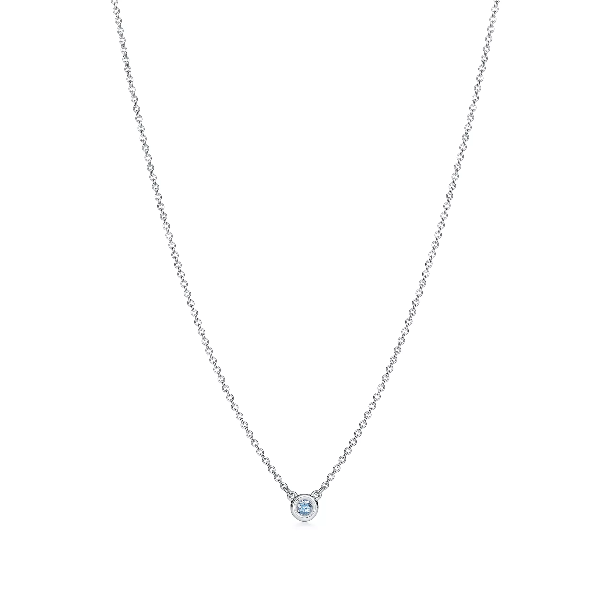 Colgante en plata esterlina con aguamarina redonda. 40,6 cm de largo. Peso en quilates: 0,06. Diseños originales sujetos a derechos de autor de Elsa Peretti®.