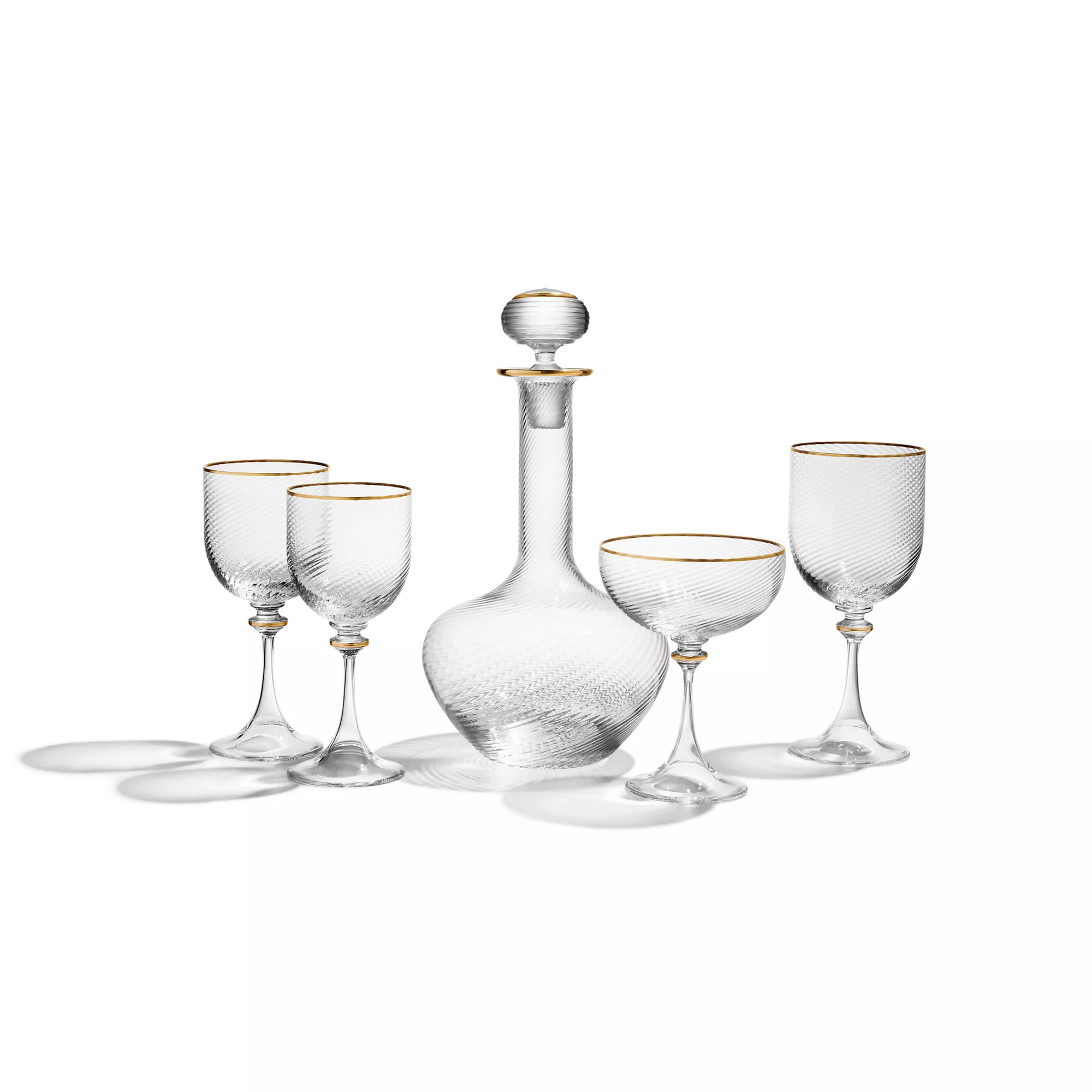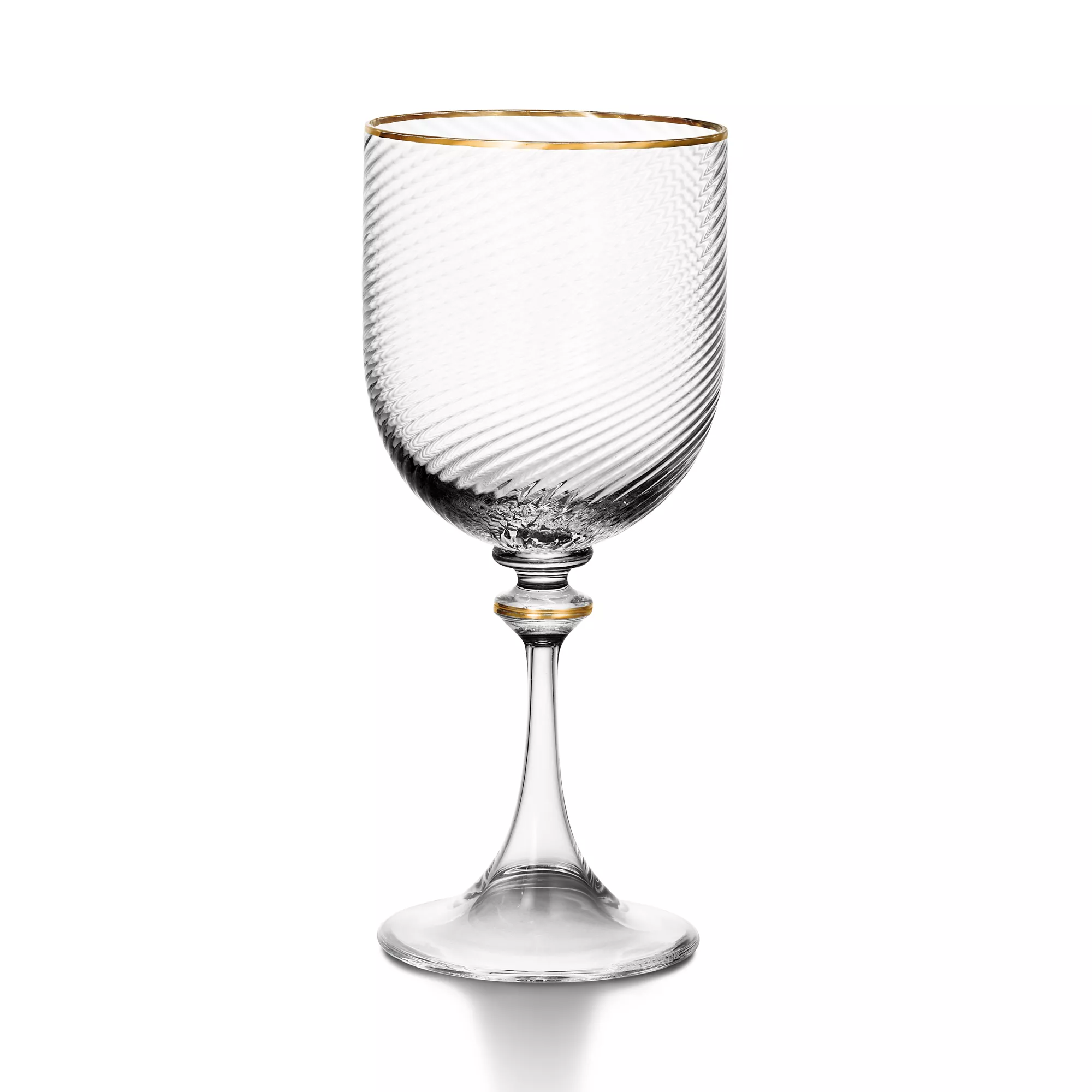 Modernos y sofisticados, los diseños de cristalería Tiffany Twist cuentan con un elegante efecto de onda en diversas formas. Una pieza de cristal soplado de Murano (Italia) con borde de oro pintado a mano. Las creaciones Tiffany Twist combinan de maravilla con los diseños para la mesa de las colecciones para el hogar de Tiffany.