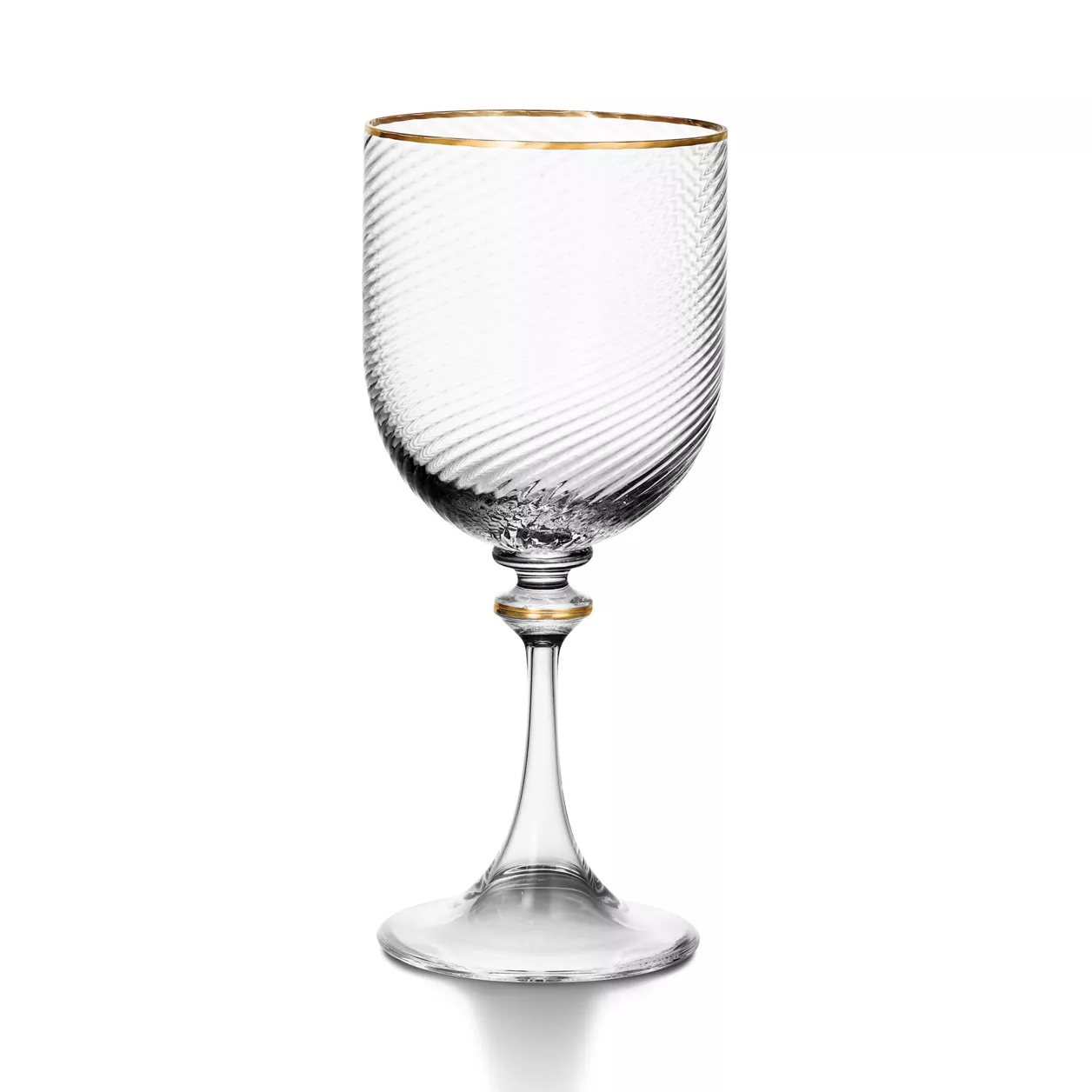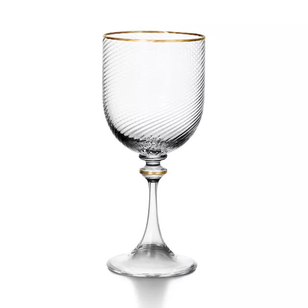 Modernos y sofisticados, los diseños de cristalería Tiffany Twist cuentan con un elegante efecto de onda en diversas formas. Una pieza de cristal soplado de Murano (Italia) con borde de oro pintado a mano. Las creaciones Tiffany Twist combinan de maravilla con los diseños para la mesa de las colecciones para el hogar de Tiffany.
