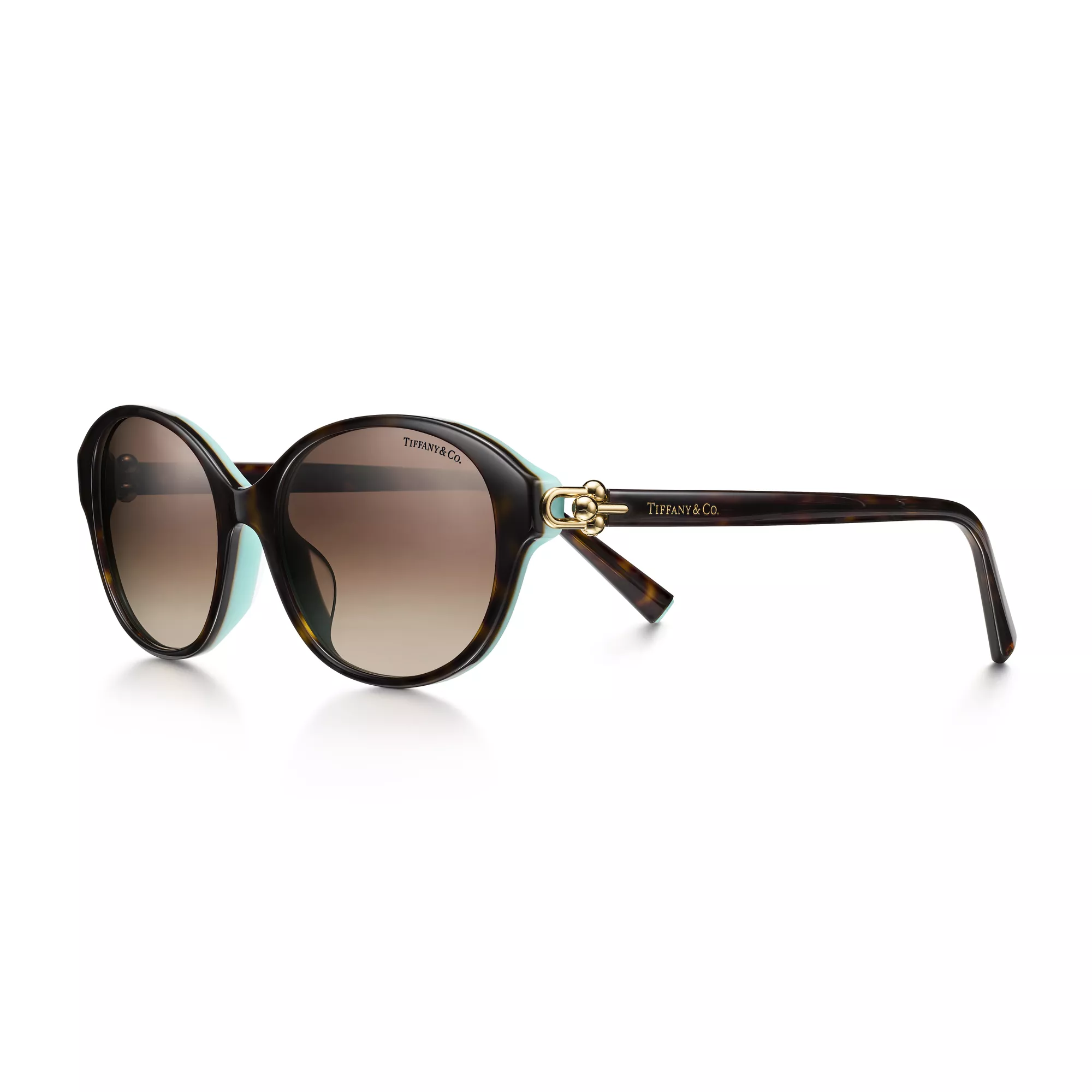 Tiffany HardWear se inspira en la actitud y la energía de la ciudad de Nueva York. Basadas en los códigos de diseño que definen la colección de joyería, estas gafas de sol cuentan con los emblemáticos eslabones anchos a modo de bisagras en las patillas. Las monturas están diseñadas en acetato carey, con cristales redondos color marrón degradado.