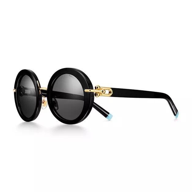La colección Tiffany HardWear encarna la actitud y la energía de la ciudad de Nueva York. Decoradas con un rompedor detalle en homenaje a los emblemáticos eslabones de la colección, estas gafas de sol redondas están meticulosamente elaboradas en acetato negro, con cristales de color gris oscuro y un toque de color Tiffany Blue®: toda una declaración de estilo enmarcando la mirada.