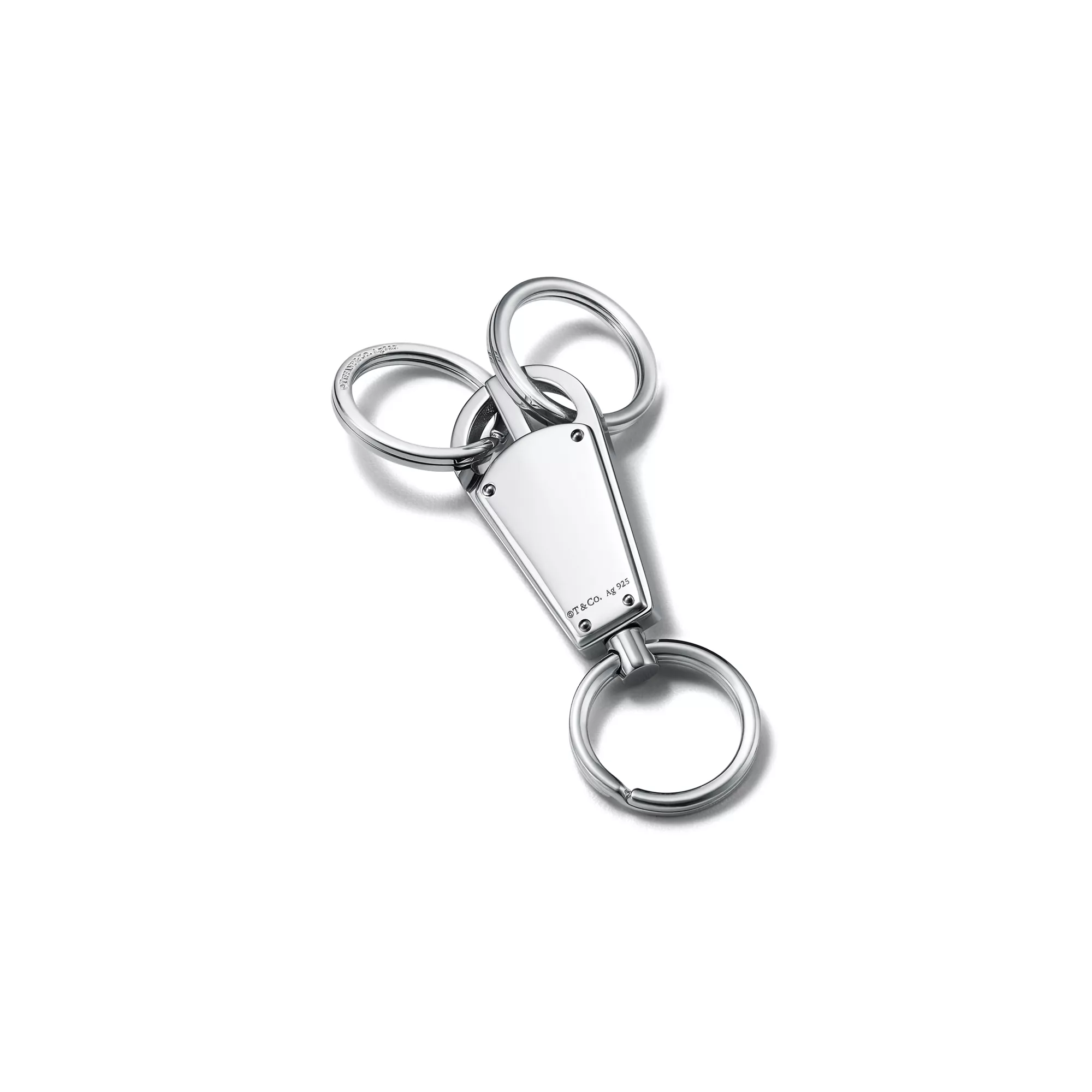 Incorporando un símbolo original del prestigioso taller de orfebrería de Tiffany, la colección Tiffany 1837 Makers rinde homenaje a la técnica y experiencia de nuestra tradición artesanal a través de una óptica moderna. Este llavero múltiple de tres anillas con el logotipo de Tiffany 1837 Makers, es muy útil para cualquier juego de llaves.