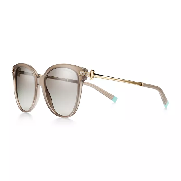 La colección Tiffany T se caracteriza por su elegante motivo en forma de “T”: un emblema de la marca. Estas gafas de sol cuentan con un característico detalle de metal en forma de “T” en las patillas, diseñado con un borde biselado y cristales ornamentales austríacos. De carácter gráfico y sorprendente, esta clásica montura redondeada se elabora con precisión en acetato ópalo gris topo, con cristales en color gris degradado.