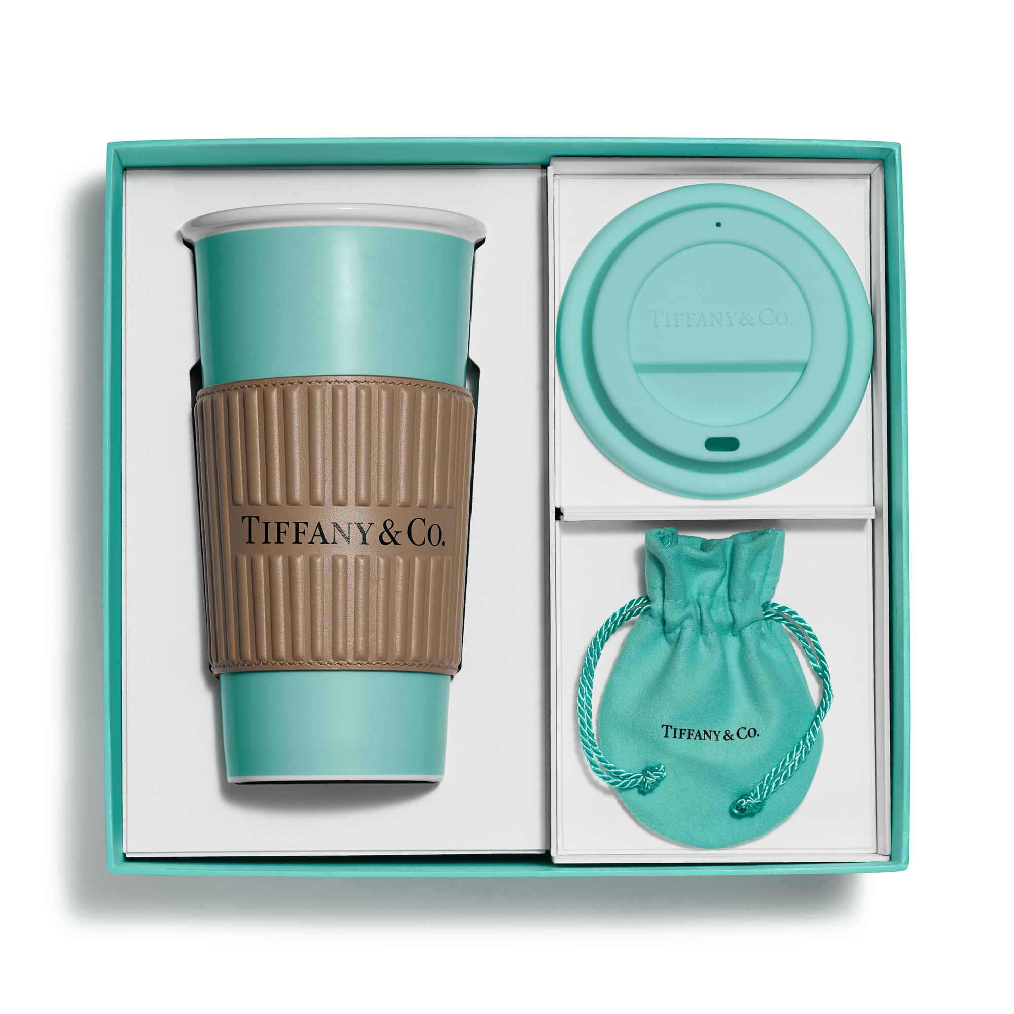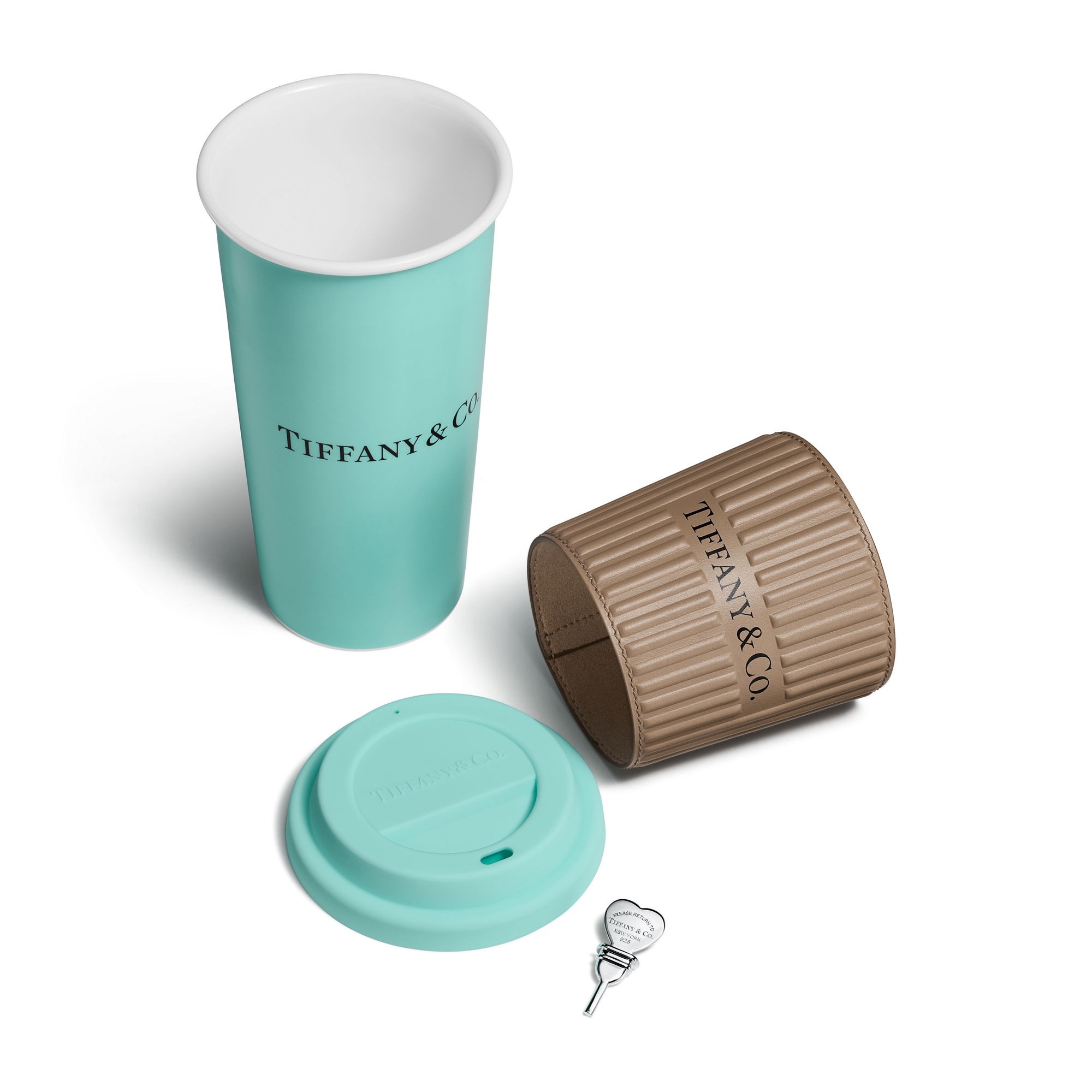 Los artesanos de Tiffany transforman artículos cotidianos en obras de artesanía. Un moderno juego de café que incluye un vaso grande de porcelana, una faja de piel con el logo de Tiffany & Co., una tapa de silicona y un tapón Return to Tiffany™ de plata de ley para la boquilla. Llévese este vaso de café dondequiera que vaya o combínelo con uno de nuestros accesorios Tiffany Home para crear el regalo perfecto.