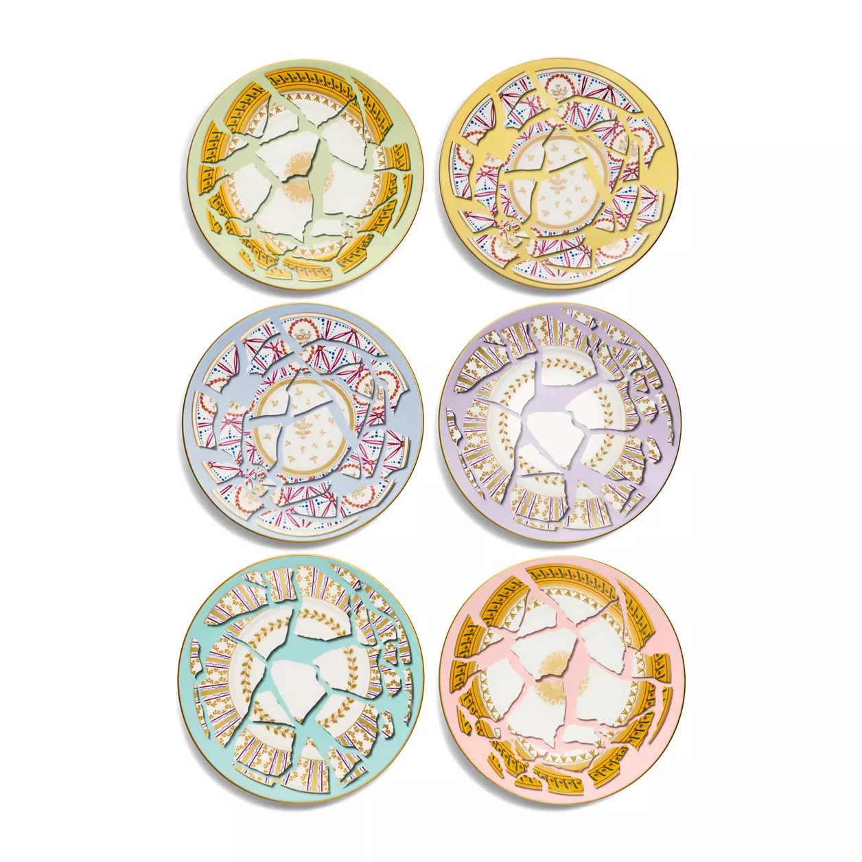 La colección Tiffany & Co. x Fondation César es una celebración de la eterna conexión entre la marca y los artistas, y una oda al espíritu del ingenio. La colección, inspirada en la obra de César, refleja la fascinación de este artista por la idea de reutilizar objetos con el fin de alejarse del convencionalismo. Esta visión se reflejaba en su casa, especialmente en la cocina, donde tenía expuestos varios platos rotos y resquebrajados en las paredes, como si de obras de arte se tratase. En esta nueva colección de Tiffany Home, reintroducimos tres diseños de archivo inspirados en los platos rotos del artista. Este juego de platos de postre incluye diferentes diseños estilo mosaico, dispuestos sobre fondos de colores inspirados en nuestras icónicas gemas. Combine este artículo con otras piezas de la colección para poner la mesa con un estilo sorprendente.