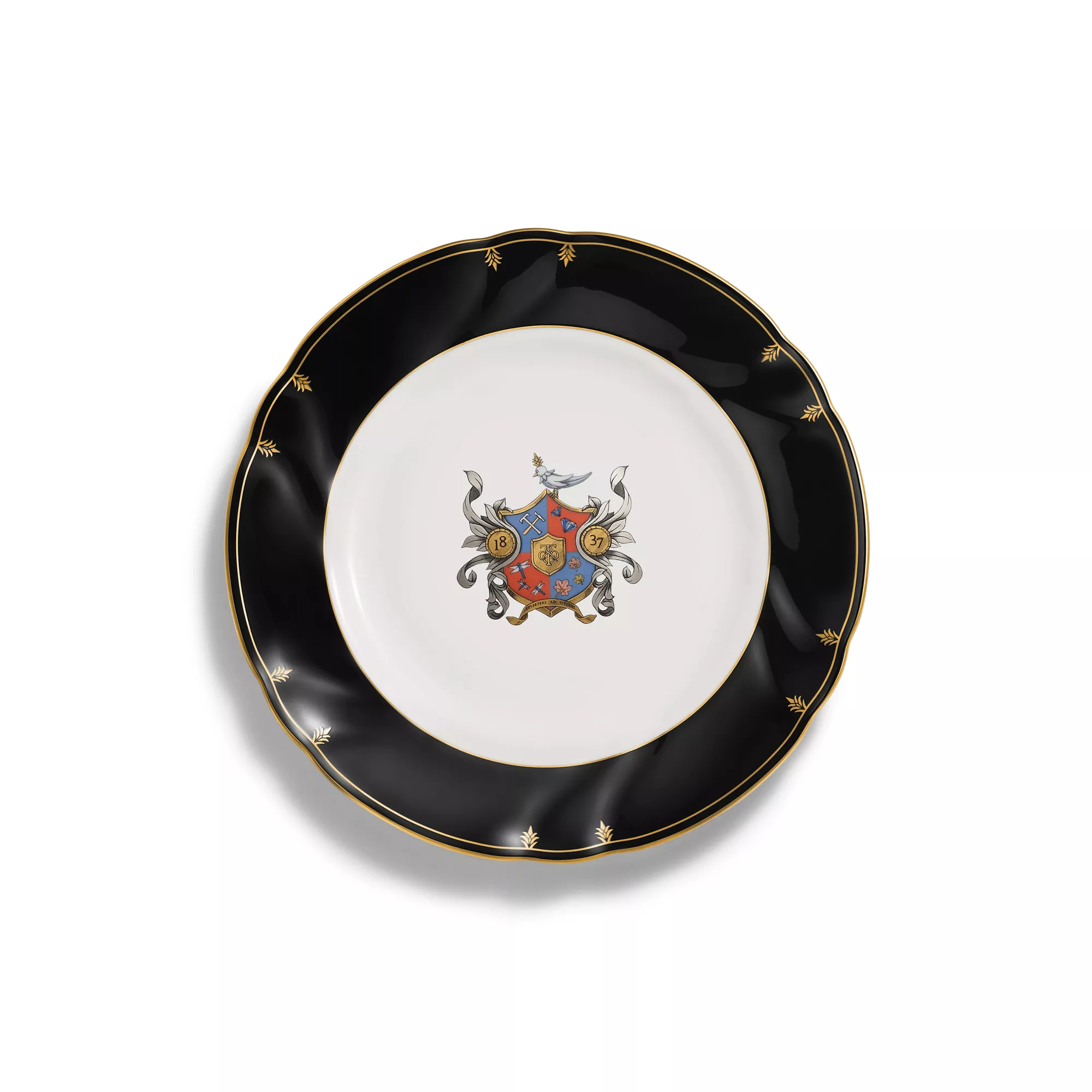 La colección Tiffany Crest celebra el legado de la marca con un elegante escudo de armas adornado con nuestros símbolos más icónicos. Posado sobre el escudo está el famoso motivo Bird on a Rock de Jean Schlumberger. El escudo en sí cuenta con un martillo y un yunque de platería en forma de “T” que rinden homenaje a nuestra labor artesanal. Los diamantes son un tributo a nuestro legado como proveedores de las mejores gemas del mundo. Las libélulas, uno de los primeros emblemas de nuestra marca, están inspiradas en obras maestras de los Archivos de Tiffany. Las hojas de arce azucarero representan el árbol del estado de Nueva York, mientras que los colores naranja y azul evocan la bandera oficial de nuestra ciudad natal, Nueva York. En la parte inferior se encuentra el lema en latín “Revertere Ad Tiffany”, que se traduce como “Devolver a Tiffany”: un guiño a la emblemática frase de nuestra famosa colección Return to Tiffany™. Combine este diseño con otras piezas de la colección Tiffany Crest para crear un estilo conjuntado, o mézclelo con piezas de otras vajillas Tiffany para poner la mesa con un toque sorprendente.