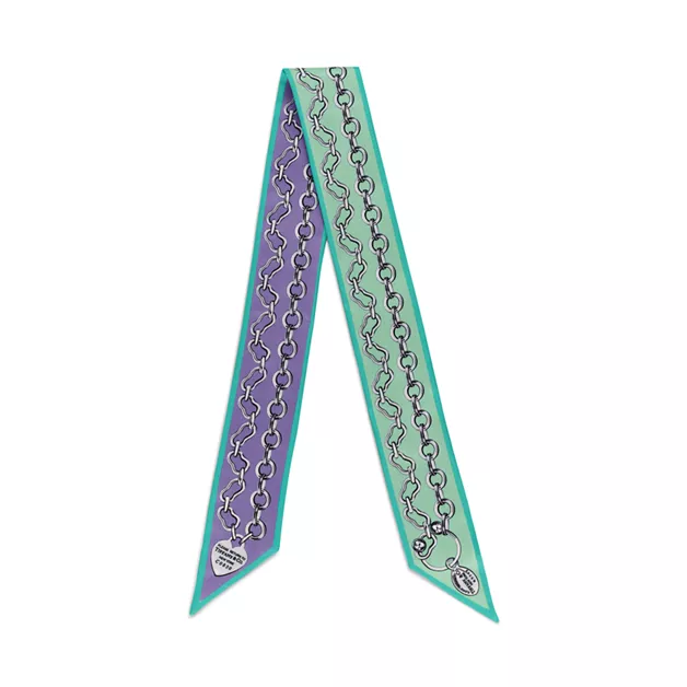 Pañuelo tipo lazo con estampado de cadenas de seda color jade y lavanda