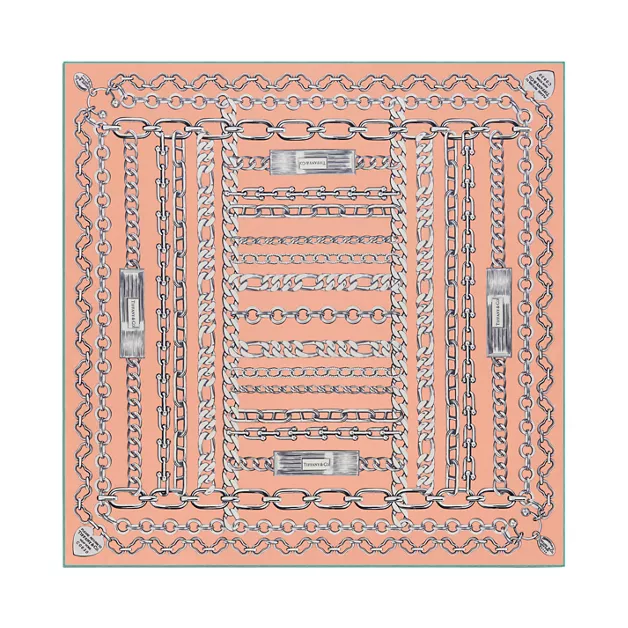 Inspirado en uno de los diseños más distintivos de la marca, el pañuelo de seda Return to Tiffany™ lleva un estampado de cadenas que evocan a nuestras icónicas joyas. Perfecto para llevarlo con un pasador de pañuelo Tiffany o atado en el asa de su bolso Return to Tiffany™ favorito.