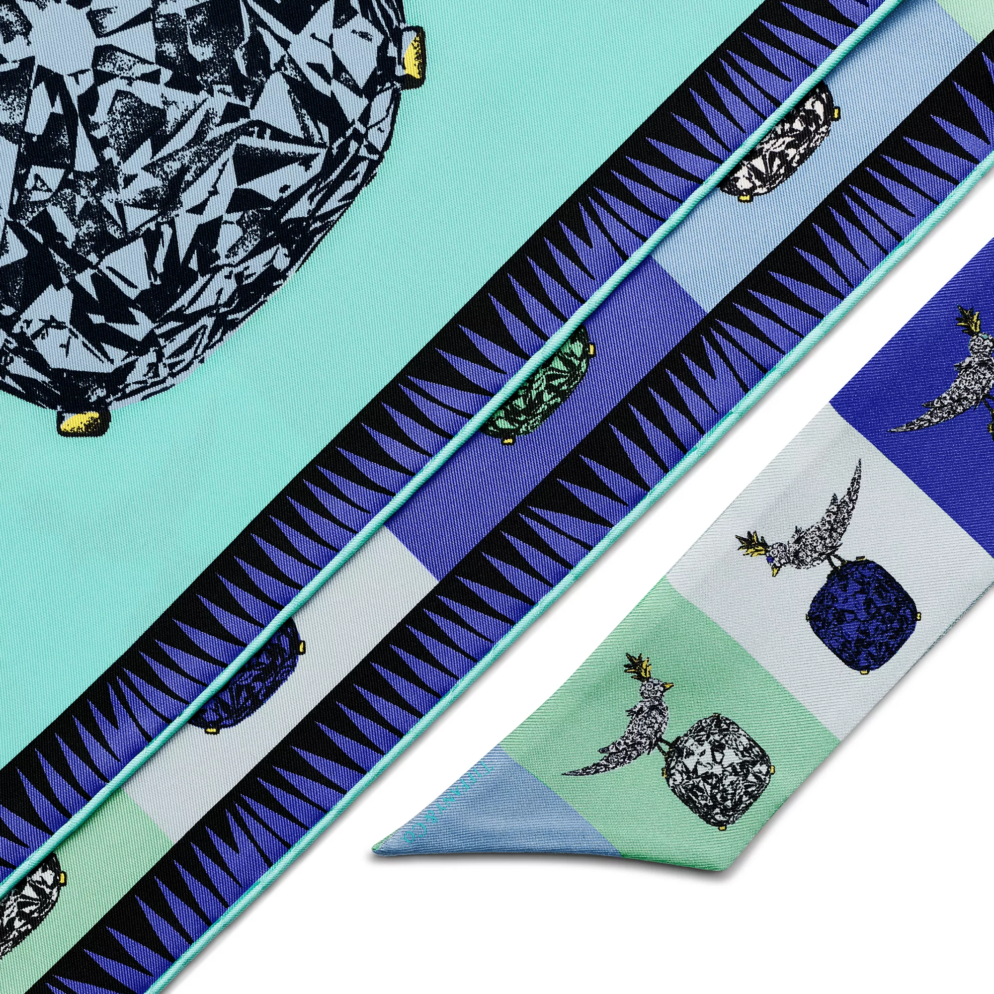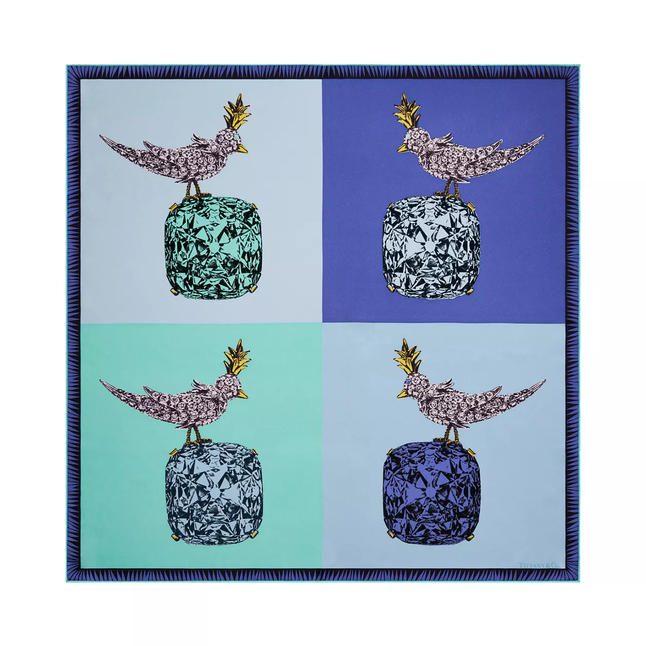 El broche Bird on a Rock de Tiffany & Co. Schlumberger es uno de los diseños de joyería más icónicos del siglo XXI. El engarce original se diseñó en la década de 1960 y, desde entonces, se ha adaptado para albergar las gemas más increíbles del mundo. Un colorido pañuelo cuadrado de seda con imágenes del famoso broche como estampado. Puede conjuntarlo con un pasador de pañuelo de Tiffany o atarlo con estilo a su bolso favorito.