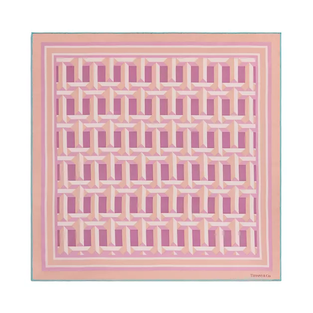 La colección Tiffany T está inspirada en nuestra letra favorita. Pañuelo cuadrado de seda con un original estampado de letras “T” alternantes en una paleta de tonos rosa palo. Puede conjuntarlo con un pasador de pañuelo de Tiffany o atarlo con estilo a su bolso favorito.