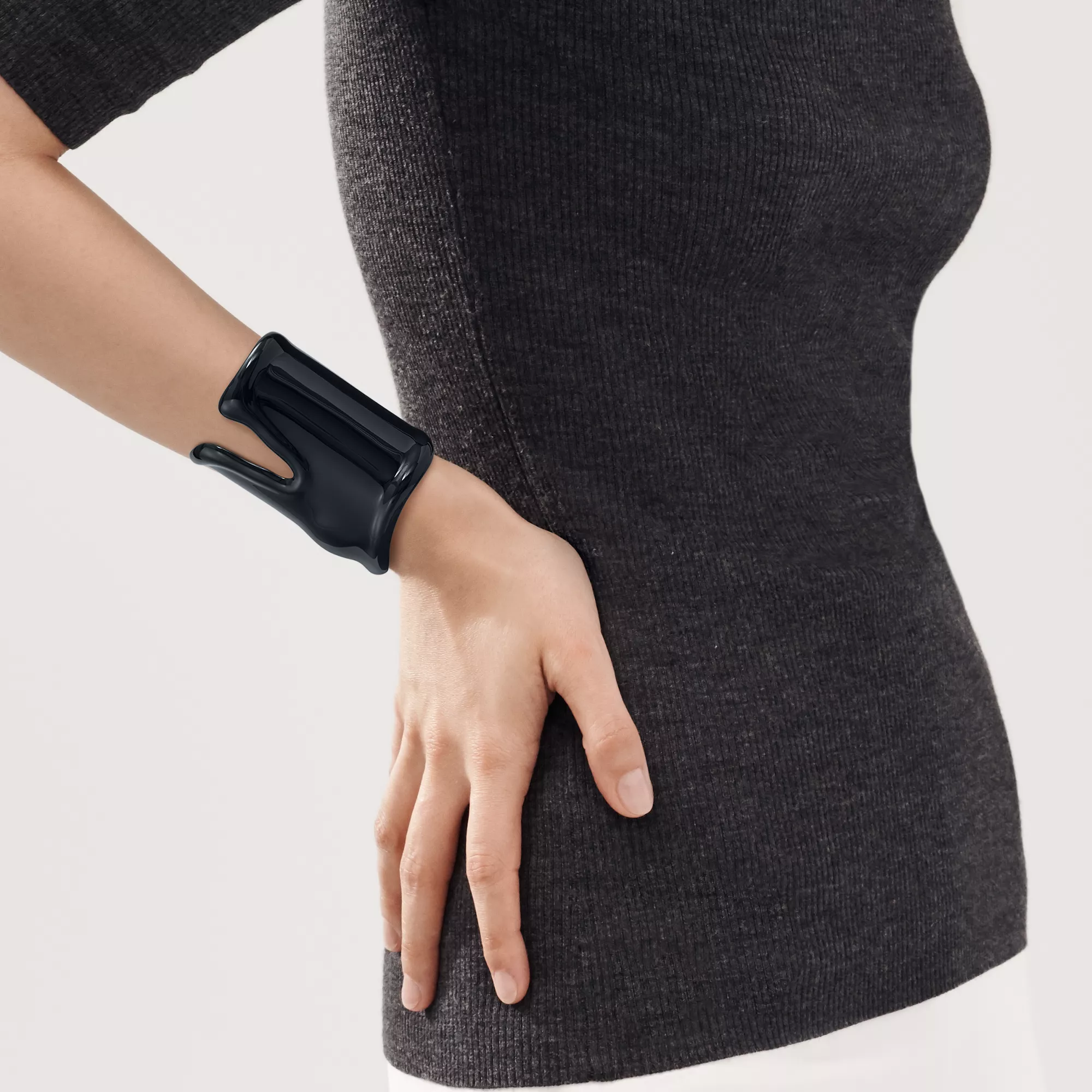 Con su diseño revolucionario e innovador, el brazalete Bone guarda el equilibrio perfecto entre sensualidad e intelecto, poder y elegancia. Elsa Peretti diseñó el brazalete Bone en 1970, inspirándose en las veces que visitó de niña la Cripta de los Capuchinos de Roma y en su pasión por la arquitectura orgánica de Antoni Gaudí. La legendaria diseñadora trabajó codo con codo con los artesanos para crear una forma pura y escultural, tan orgánica y ergonómica que se fundiera con el cuerpo. Este brazalete Bone grande está diseñado con una sublime asimetría y un luminoso acabado en negro. Para causar sensación, póngase este icónico diseño solo o cree un juego de contrastes combinándolo con un brazalete Bone de oro amarillo de 18 quilates o de plata de ley en la otra muñeca.
