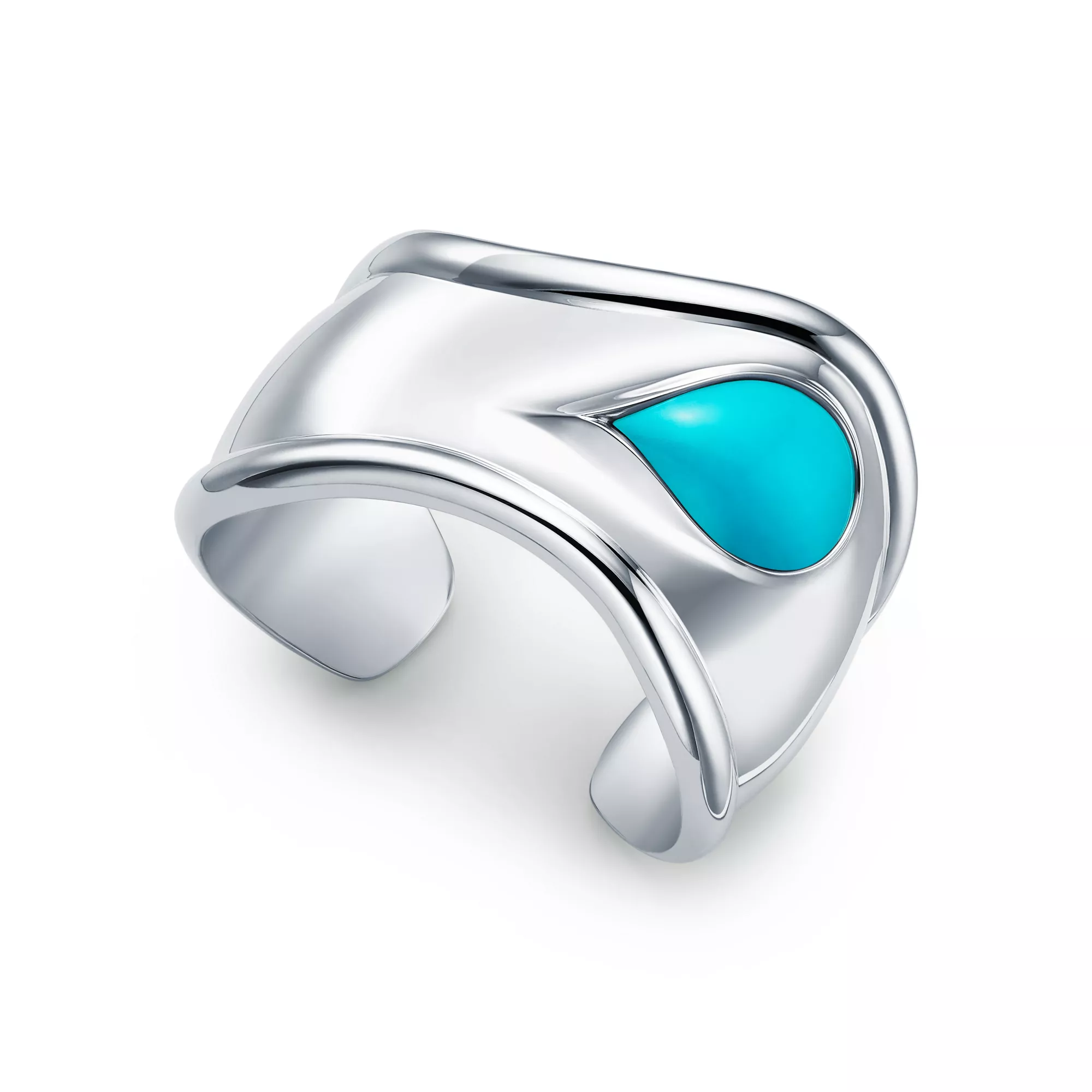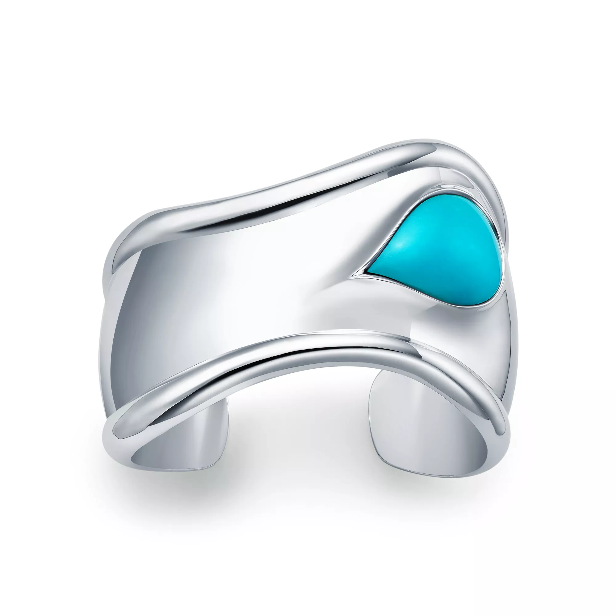 Los brazaletes Bone con piedras talladas de Elsa Peretti®, un guiño a la sublime belleza de la naturaleza, han sido elaborados por las manos expertas de maestros artesanos que han tallado e incrustado cada piedra. Poderosamente femenino y rebosante de elegancia natural, el revolucionario brazalete Bone se presentó por primera vez en la década de 1970. Este brazalete Bone en plata de ley es una nueva versión de este icónico diseño, que rinde homenaje a la belleza de la turquesa incrustada a mano y refleja la pasión de la diseñadora por las superficies suaves y esculturales.
