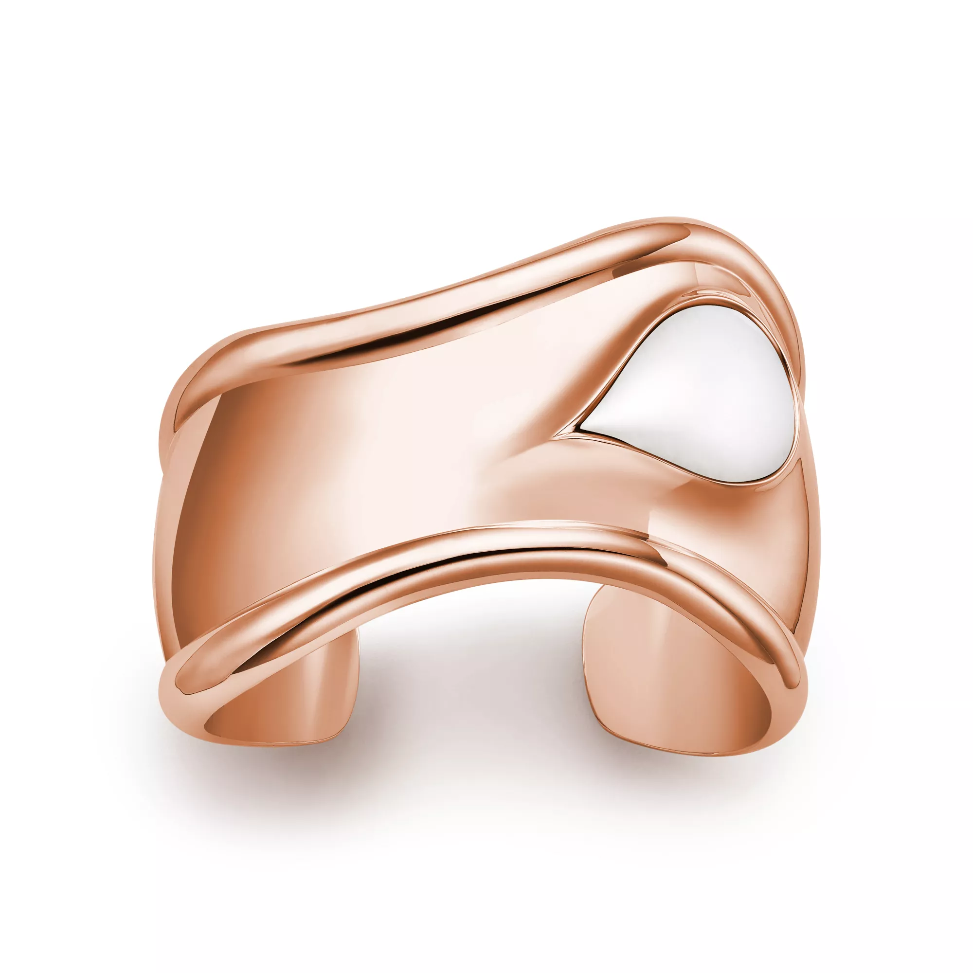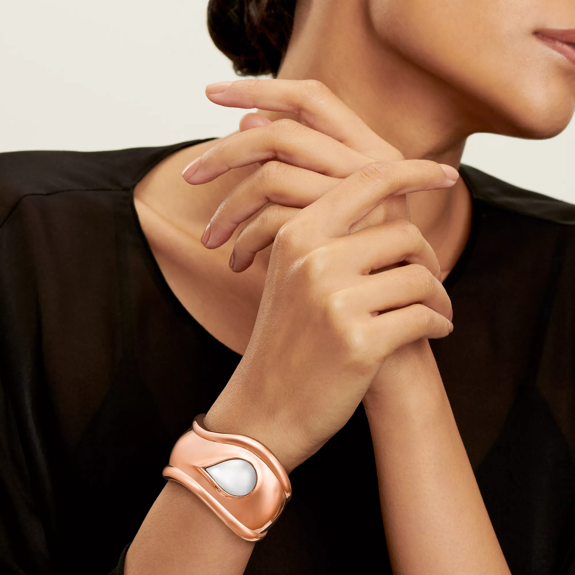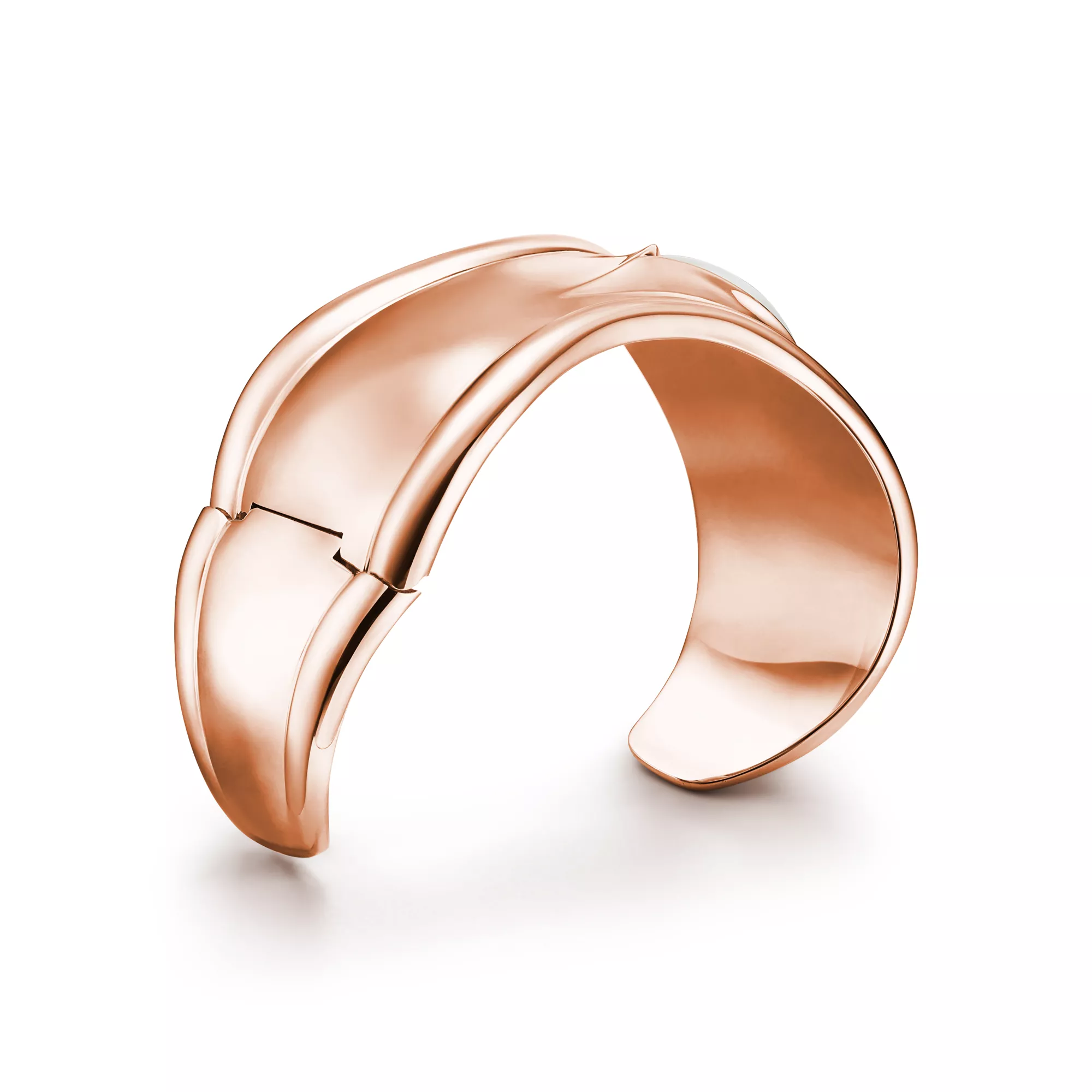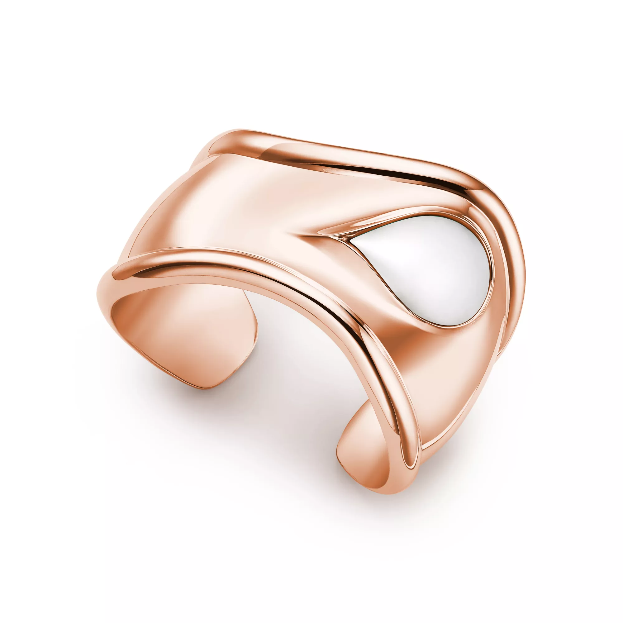 Los brazaletes Bone con piedras talladas de Elsa Peretti®, un guiño a la increíble belleza de la naturaleza, han sido elaborados por las manos expertas de maestros artesanos que han tallado e incrustado cada piedra. Poderosamente femenino y rebosante de elegancia natural, el revolucionario brazalete Bone se presentó por primera vez en la década de 1970. Este brazalete Bone de oro rosa de 18 quilates es una nueva versión del icónico diseño, que rinde homenaje a la belleza del jade de nefrita blanco incrustado a mano y que refleja la pasión de la diseñadora por las formas esculturales y suaves.