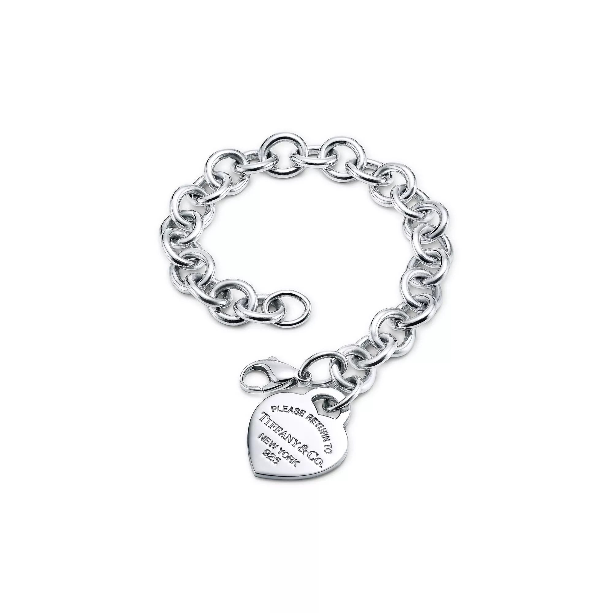 Un popular diseño que nunca pasa de moda. Esta pulsera con charm incluye llamativos eslabones y una distintiva insignia de corazón. Inspirada en el icónico llavero presentado en 1969, la colección Return to Tiffany™ es un clásico reinventado. Combine esta pieza con otros diseños en plata de ley.