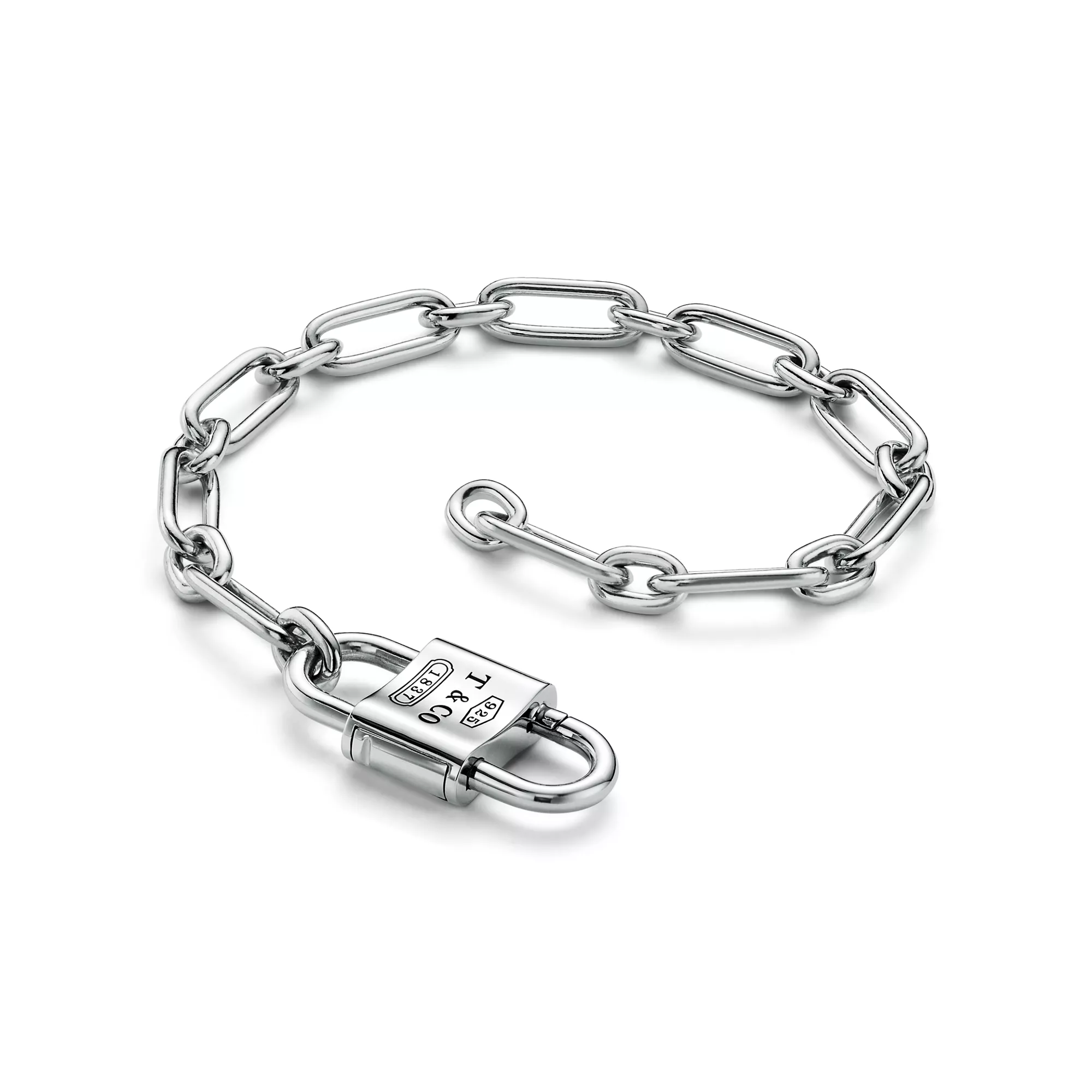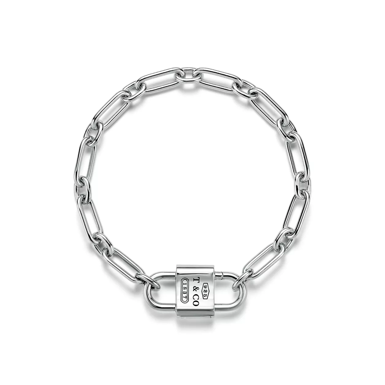 La colección Tiffany 1837™ muestra con orgullo la inscripción del año en que se fundó Tiffany y se define por sus delicados contornos y curvas. La pulsera incluye un candado funcional que se abre por ambos lados y añade un toque moderno a este diseño de inspiración tradicional. Puede llevar esta pulsera sola o combinada con otros diseños de la colección Tiffany 1837™.