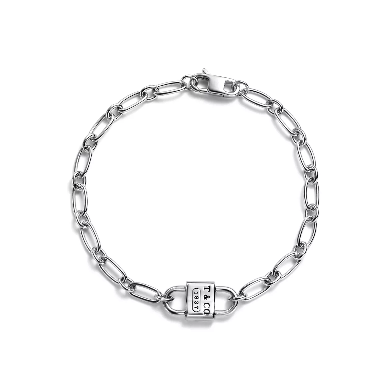 La colección Tiffany 1837™ muestra con orgullo la inscripción del año en que se fundó Tiffany y se define por sus delicados contornos y curvas. El candado con doble cierre añade un toque moderno a este diseño de inspiración tradicional. Puede llevar esta pulsera sola o combinada con otros diseños de la colección Tiffany 1837™.