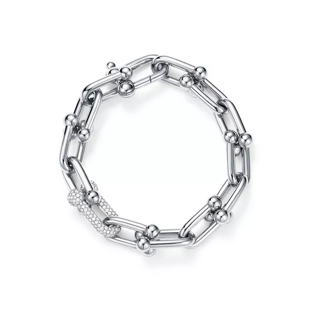 Tiffany HardWear Pulsera de eslabones grandes de oro blanco con diamantes