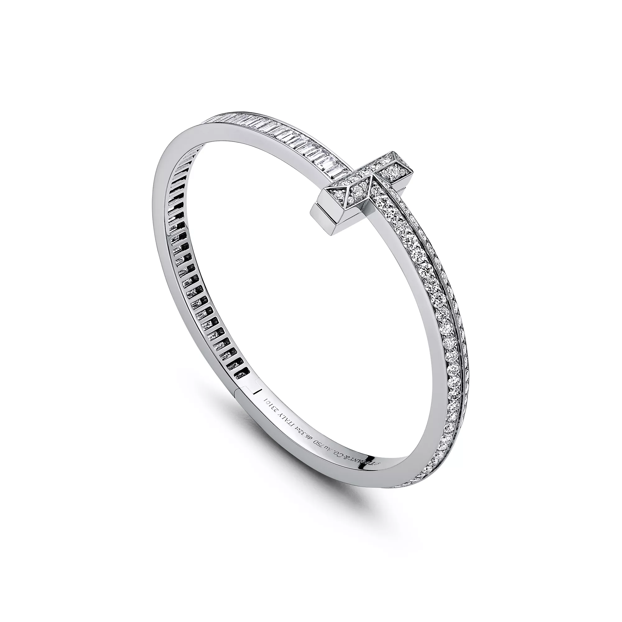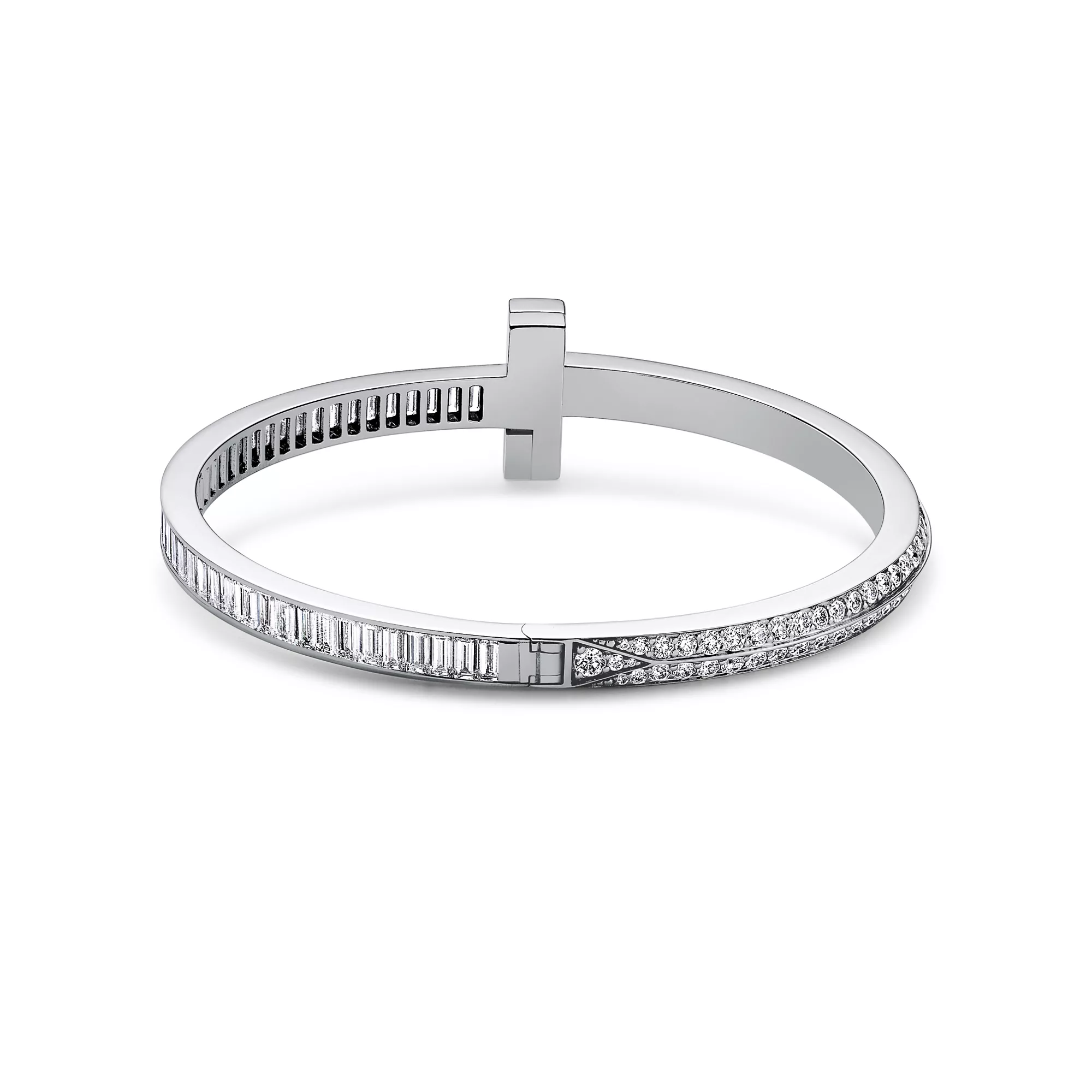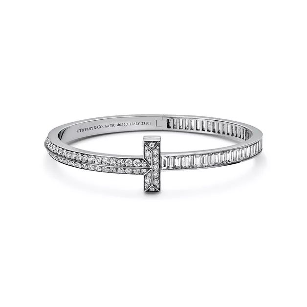 Tiffany T es una expresión del infinito potencial del amor. Inspirada en una pulsera de archivo de 1975, la colección Tiffany T es un homenaje al icónico motivo de la marca y al espíritu de Nueva York, una ciudad que nuestro fundador Charles Lewis Tiffany consideraba un lugar lleno de promesas y oportunidades. Puede llevar este espectacular brazalete solo o combinarlo con otros diseños Tiffany T para crear un estilo rompedor.