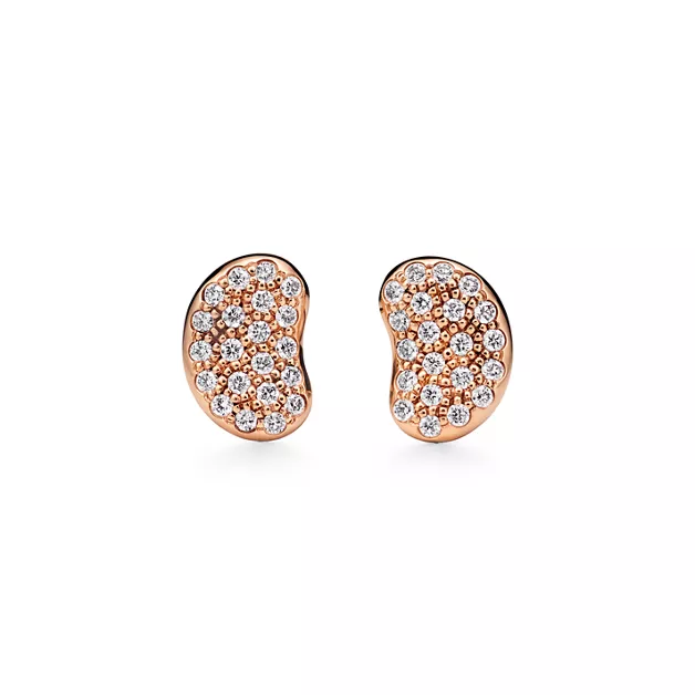 Elsa Peretti® Pendientes Bean design en oro rosa con diamantes, 9 mm