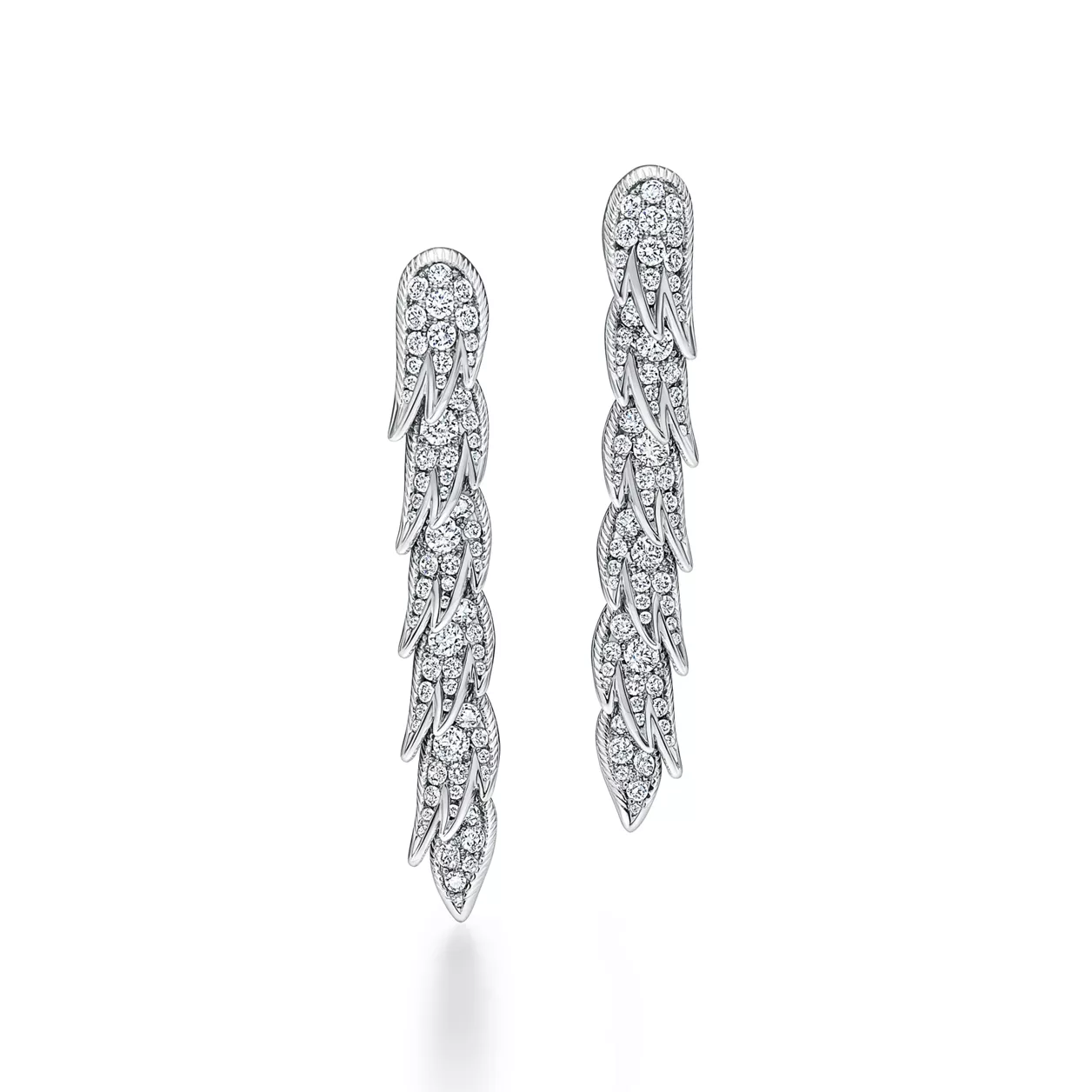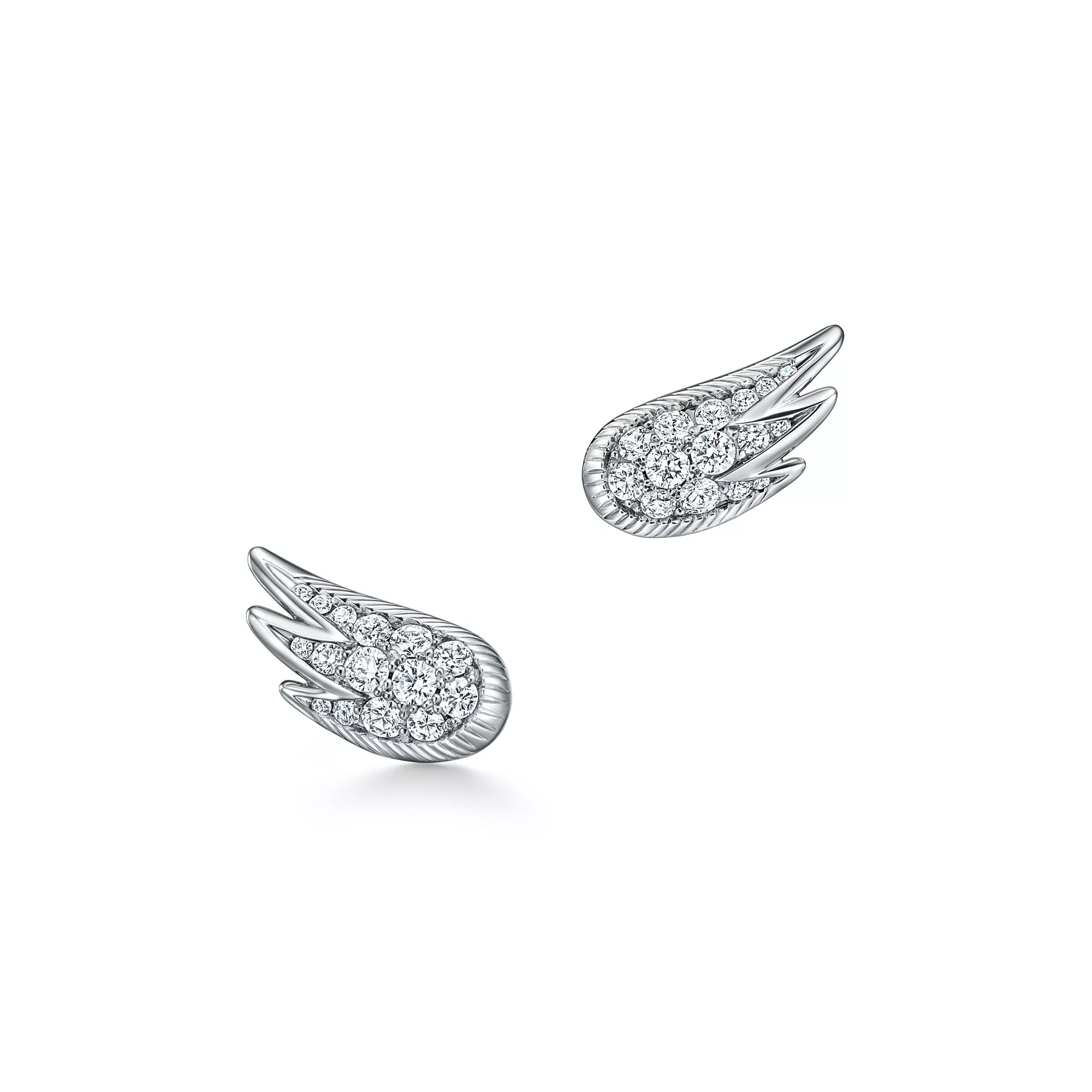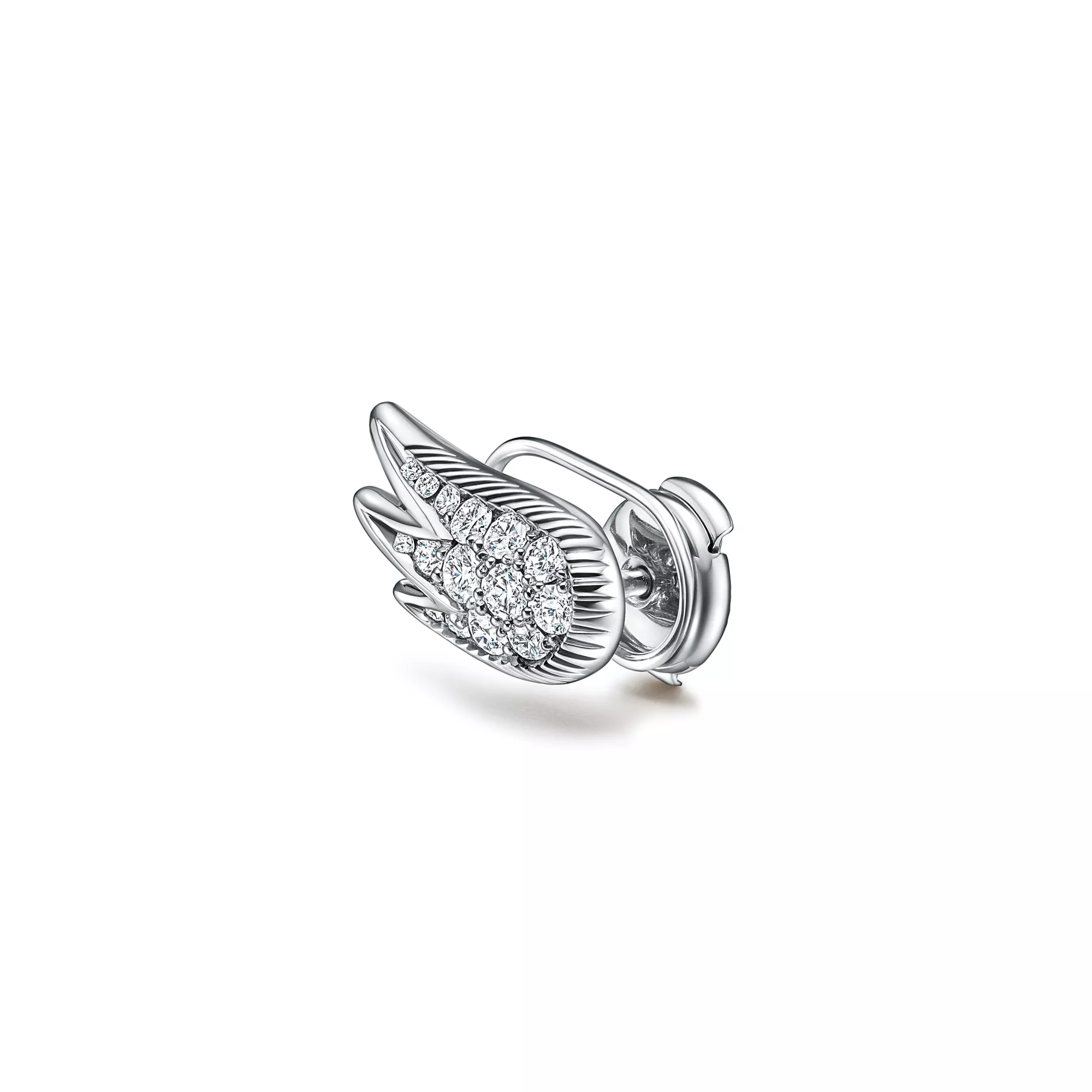 Bird on a Rock by Tiffany es una expresión del optimismo ilimitado del amor. Este motivo abstracto no tiene un engarce visible, lo que resalta la pureza del ala que parece acariciada por el viento. Relucientes pendientes transformables de platino, adornados con llamativas plumas de estilo escultural, que han sido meticulosamente elaborados usando técnicas especializadas de alta joyería. Cada diseño capta el elegante movimiento que se ve en la naturaleza, representado a través de un delicado equilibrio entre diamantes brillantes y metales preciosos. El motivo conserva el arte vanguardista del broche Bird on a Rock original, diseñado por Jean Schlumberger, y lo transforma en creaciones rompedoras y texturizadas.