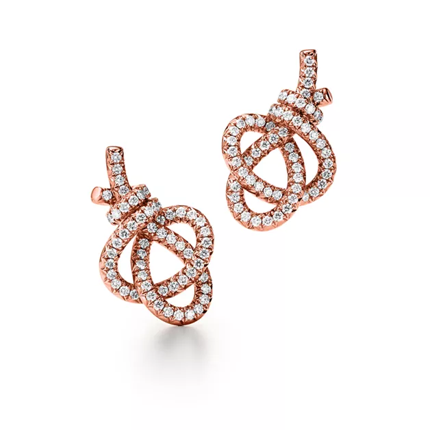 Tiffany Knot es una expresión de los lazos inquebrantables del amor. Inspirado en un lazo de archivo diseñado en 1889, el motivo Knot es un símbolo de los vínculos más duraderos y las conexiones más importantes de la vida. Estos pendientes están elaborados con oro rosa de 18 quilates pulido a mano para darle un brillo intenso. Cada diamante redondo brillante, seleccionado específicamente para cumplir con los elevados estándares de Tiffany, se engarza a mano en ángulos de manera precisa para maximizar su brillo. Póngase estos pendientes solos o combínelos con unos pendientes largos para crear un look espectacular.