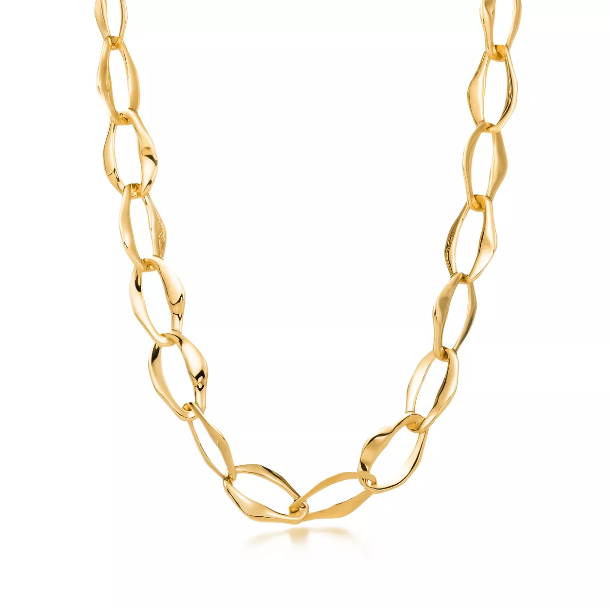 Los bordes de cada eslabón se han suavizado, como si hubieran sido esculpidos por las olas del extenso mar. Collar en oro de 18 quilates. 50,8 cm de largo. Diseños originales sujetos a derechos de autor de Elsa Peretti®.