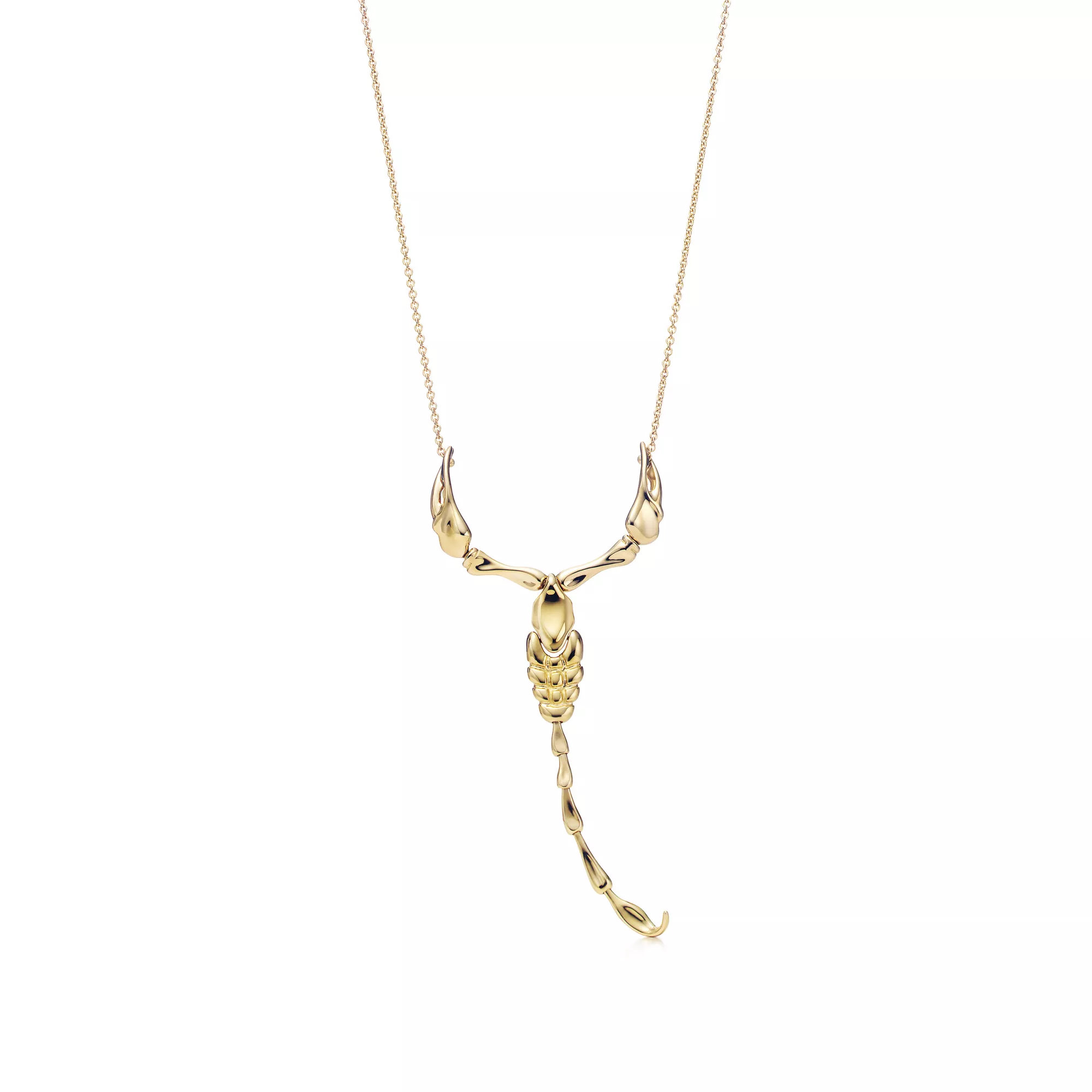 Inspirados en los escorpiones que Elsa Peretti descubrió en los alrededores de su casa de España. Colgante en oro de 18 quilates, 11 mm. En una cadena de 40,6 cm. Diseños originales sujetos a derechos de autor de Elsa Peretti®.