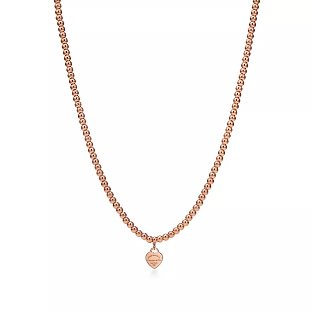 Return to Tiffany™ Collar de cuentas con insignia de corazón de oro rosa, tamaño mini