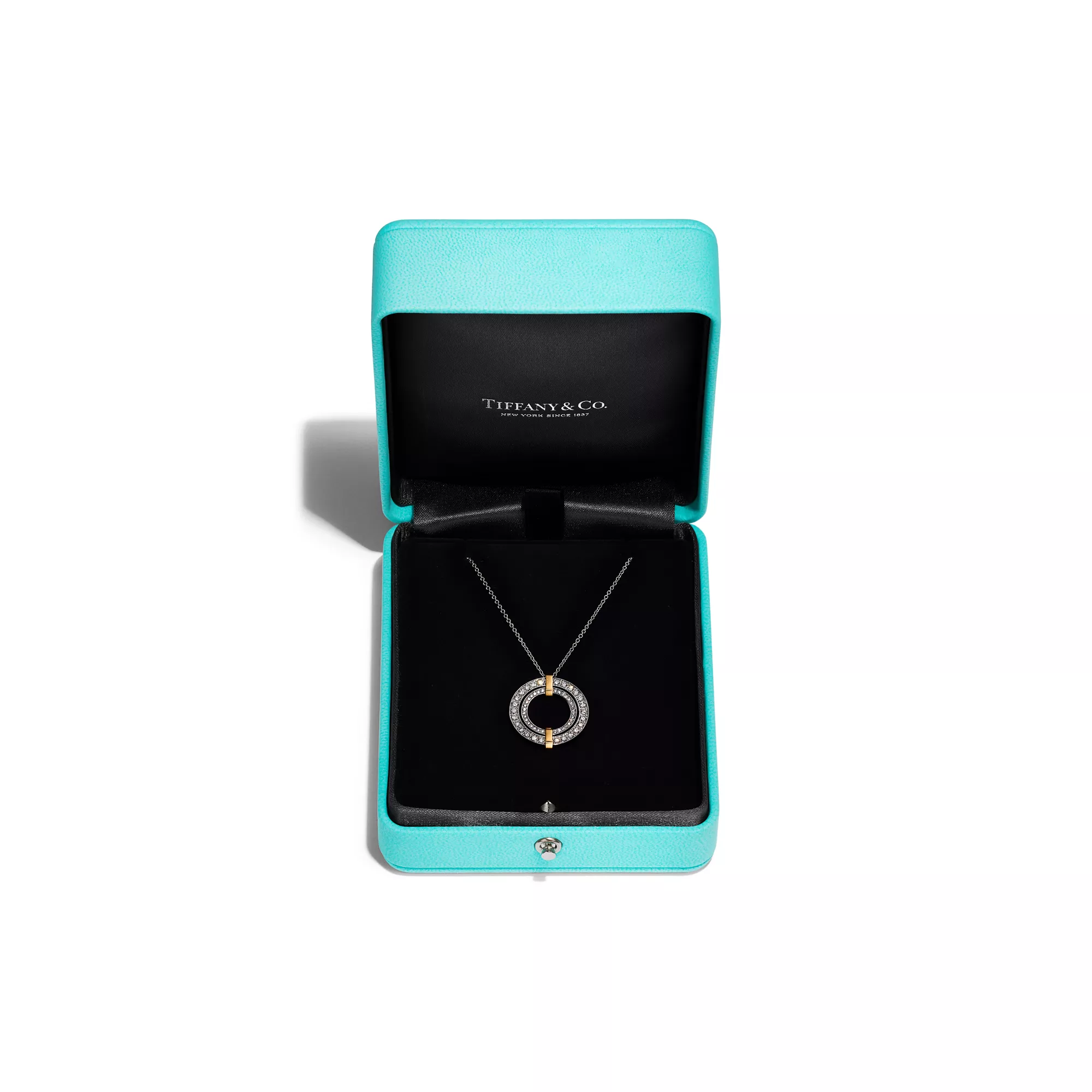 Reimaginando las joyas de diamantes desde un punto de vista contemporáneo, la colección Tiffany Edge se define por su característico ribete de oro amarillo de 18 ct que une varias filas de diamantes redondos brillantes. Este colgante Circle de Tiffany Edge, un equilibrio de líneas limpias y diamantes llamativos, cuenta con un sorprendente contraste de metales preciosos. Llévelo solo o con otros collares Tiffany para obtener el máximo impacto.