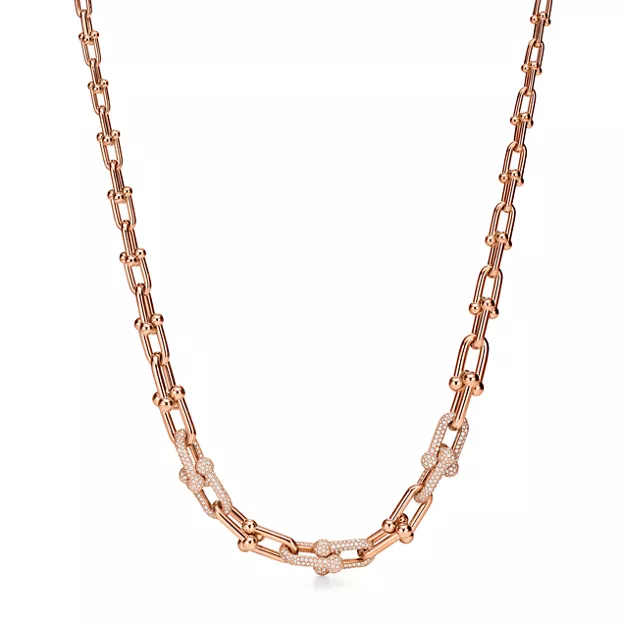 Tiffany HardWear Collar de eslabones escalonados en oro rosa de 18 quilates con pavé de diamantes