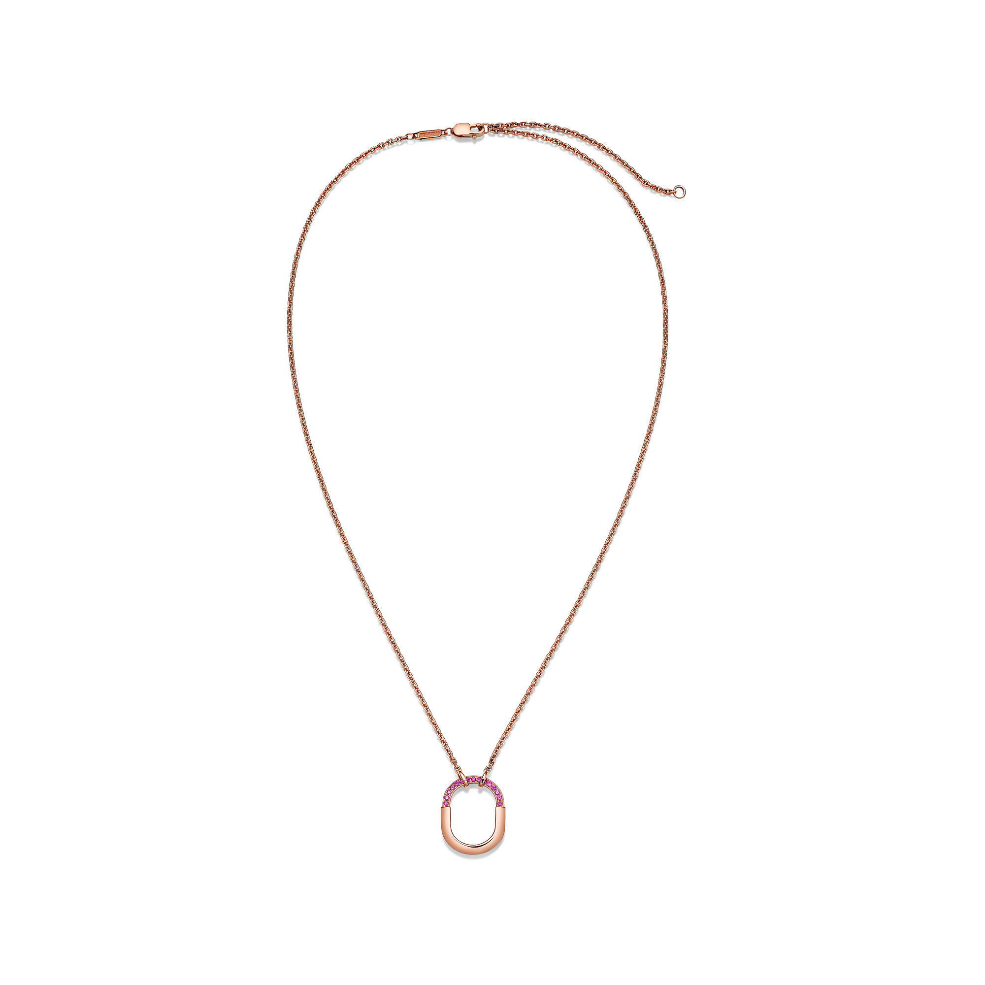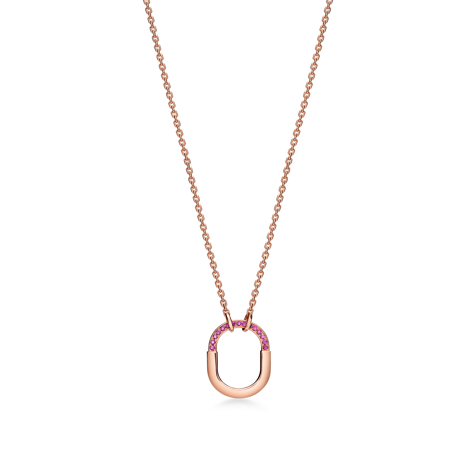 Tiffany Lock es una expresión de la eterna protección del amor. Esta colección está inspirada en un candado de los Archivos de Tiffany que data de 1883. Lock es un símbolo universal de lo que de verdad importa, diseñado para salvaguardar lo más preciado. Este colgante, impecablemente elaborado por los artesanos de Tiffany, lleva una espectacular combinación de oro rosa de 18 quilates y zafiros rosas. Cada zafiro rosa, seleccionado específicamente para cumplir con los elevados estándares de Tiffany, se engarza a mano de manera que se maximice su brillo desde todos los ángulos. Para crear un look rompedor, combine este colgante con otros diseños de la colección.