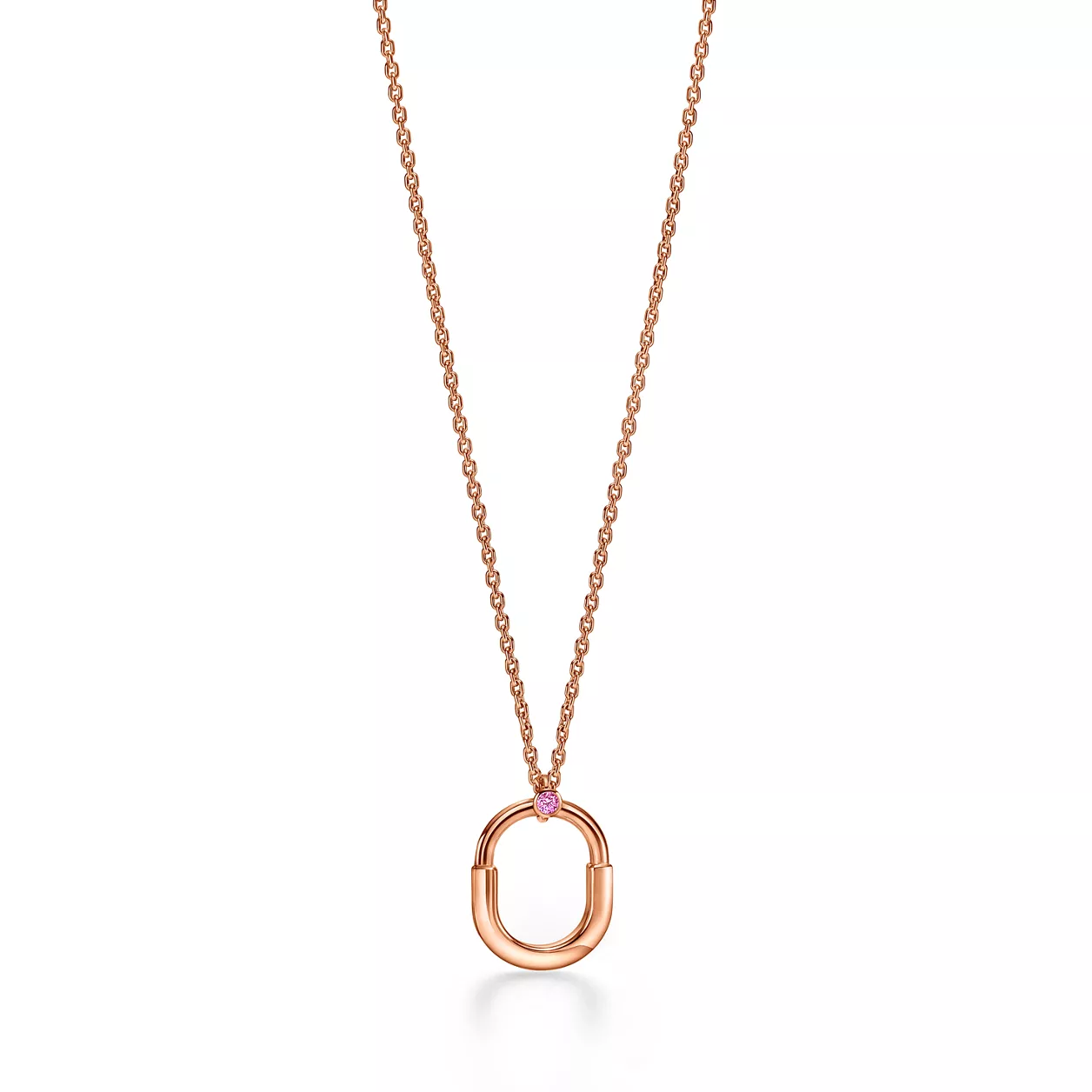 Tiffany Lock es una expresión de la eterna protección del amor. Esta colección está inspirada en un candado de los Archivos de Tiffany que data de 1883. Lock es un símbolo universal de lo que de verdad importa, diseñado para salvaguardar lo más preciado. Este colgante, impecablemente elaborado por los artesanos de Tiffany, lleva una espectacular combinación de oro rosa de 18 quilates y un zafiro rosa. Este zafiro rosa, seleccionado específicamente para cumplir con los elevados estándares de Tiffany, se engarza a mano de manera que se maximice su brillo desde todos los ángulos. Para crear un look rompedor, combine este colgante con otros diseños de la colección.