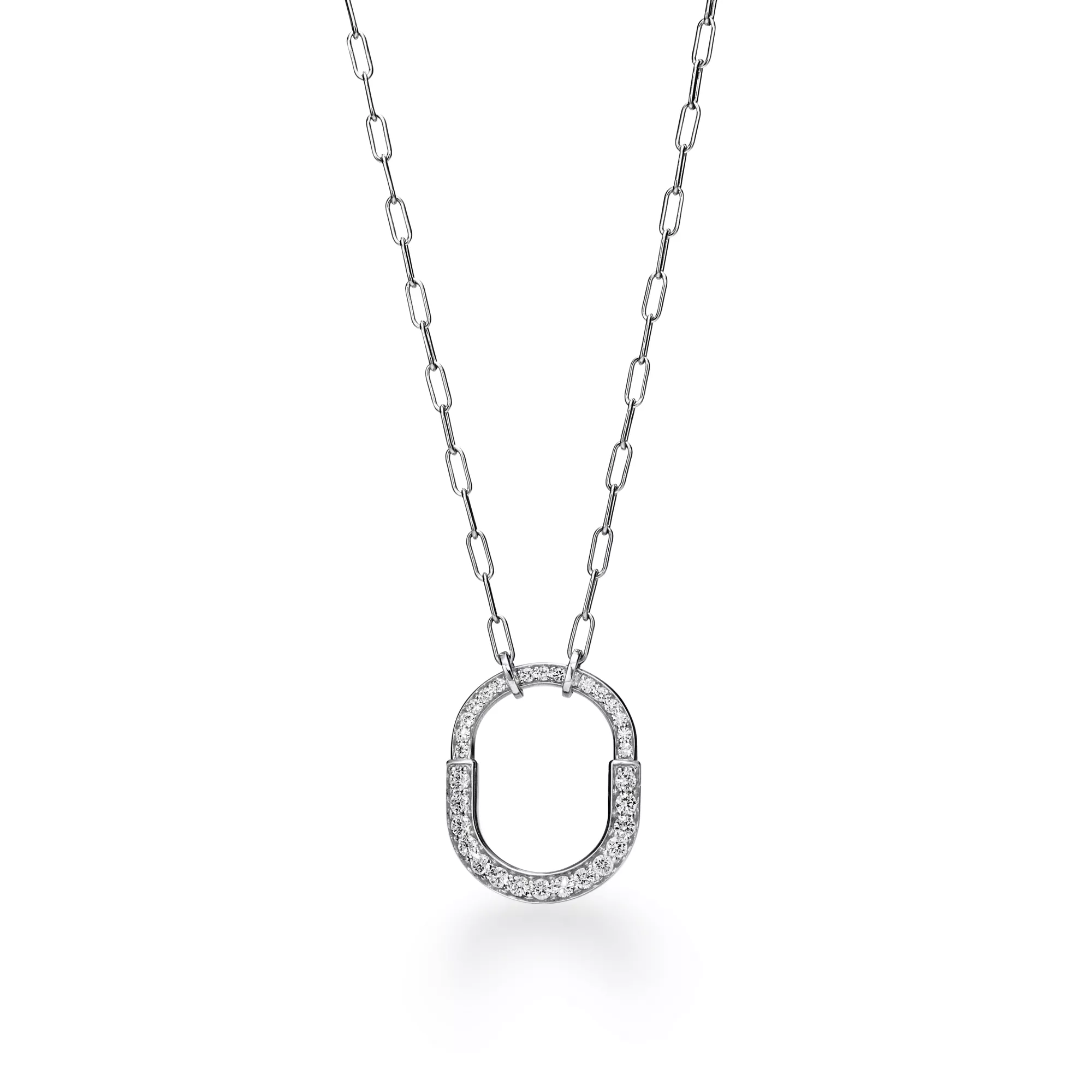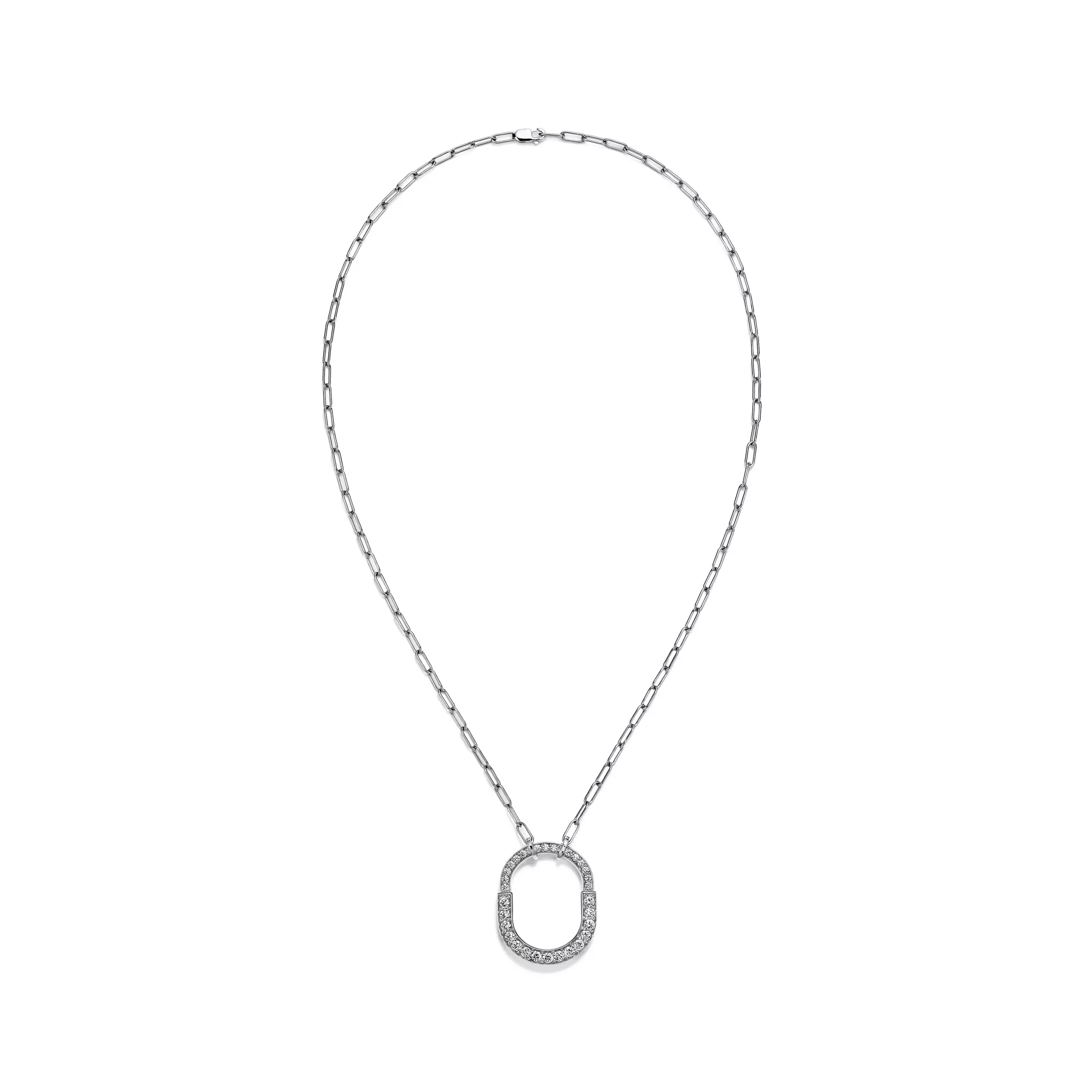 Tiffany Lock Colgante en oro blanco con diamantes en pavé, tamaño mediano