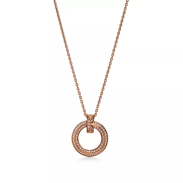 Tiffany T T1 Colgante circular estrecho de oro rosa con diamantes en pavé