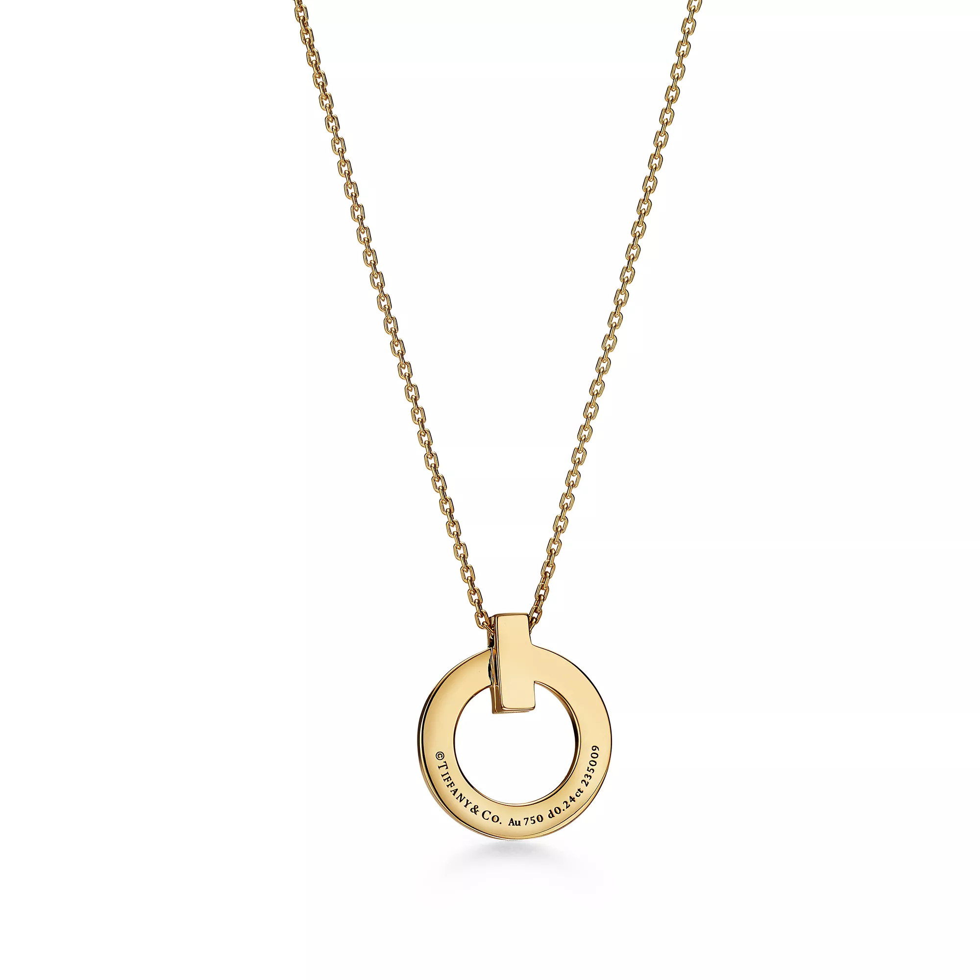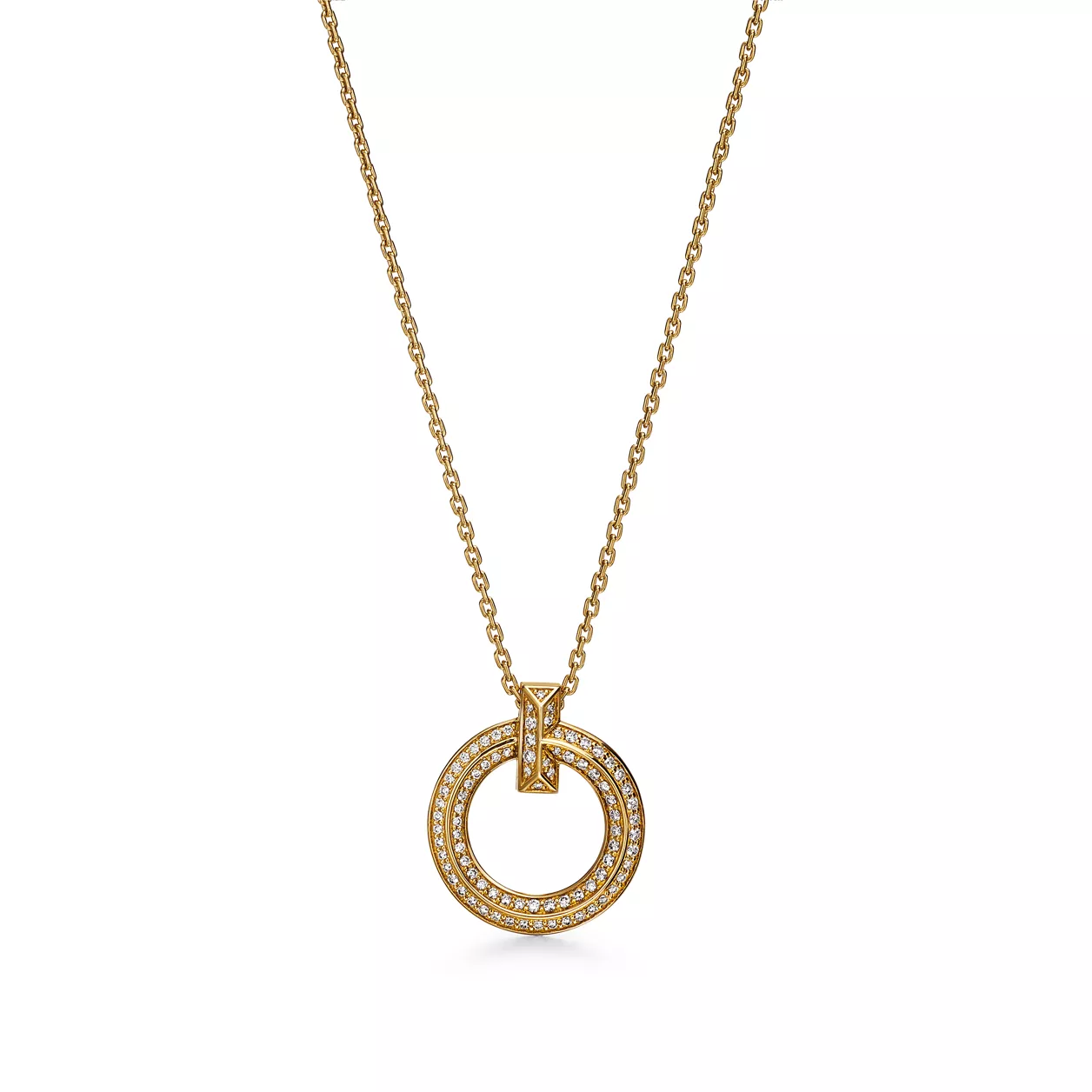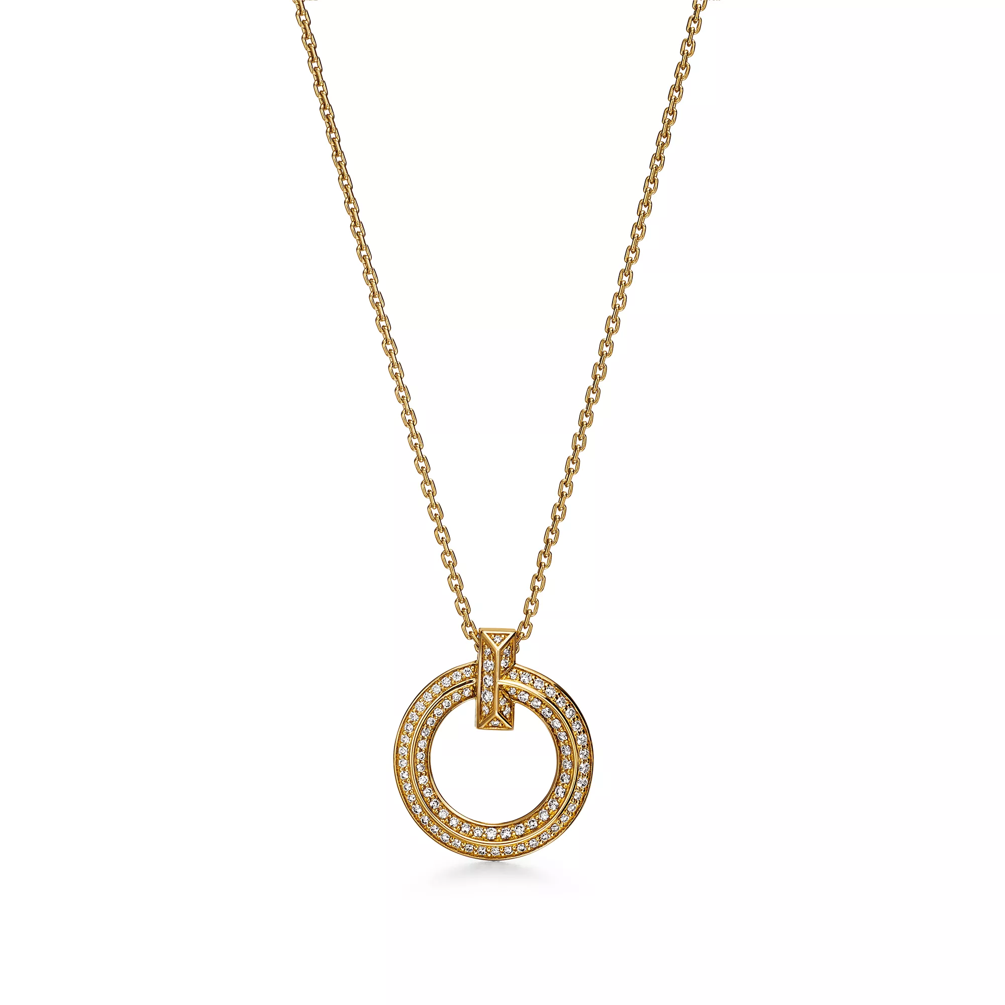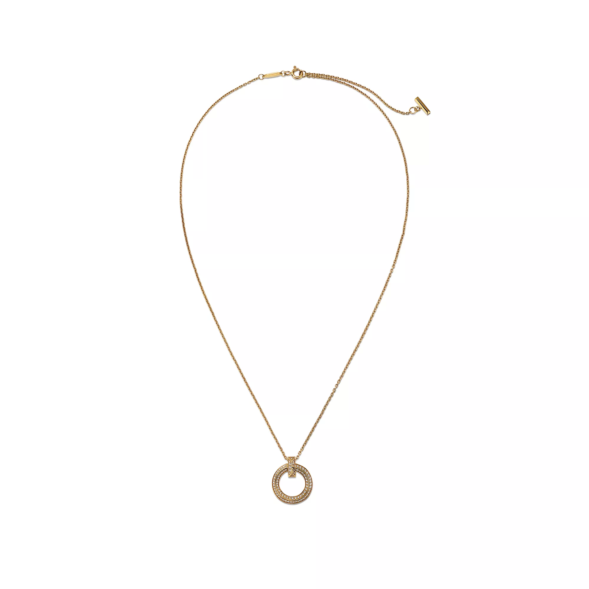 Tiffany T T1 Colgante circular estrecho de oro amarillo con diamantes en pavé