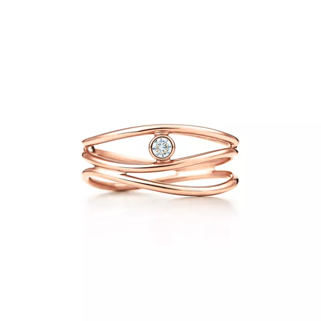 Oro rosa de 18 quilates con un diamante redondo brillantePeso en quilates de 0,05Diseños originales propiedad de Elsa Peretti -