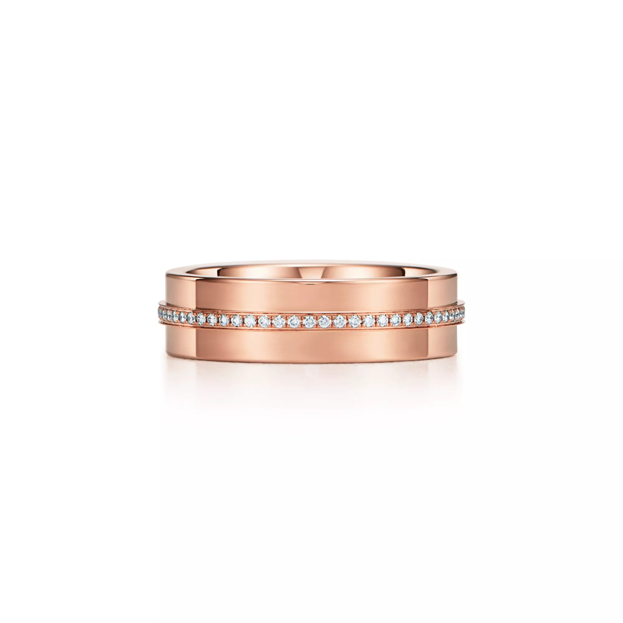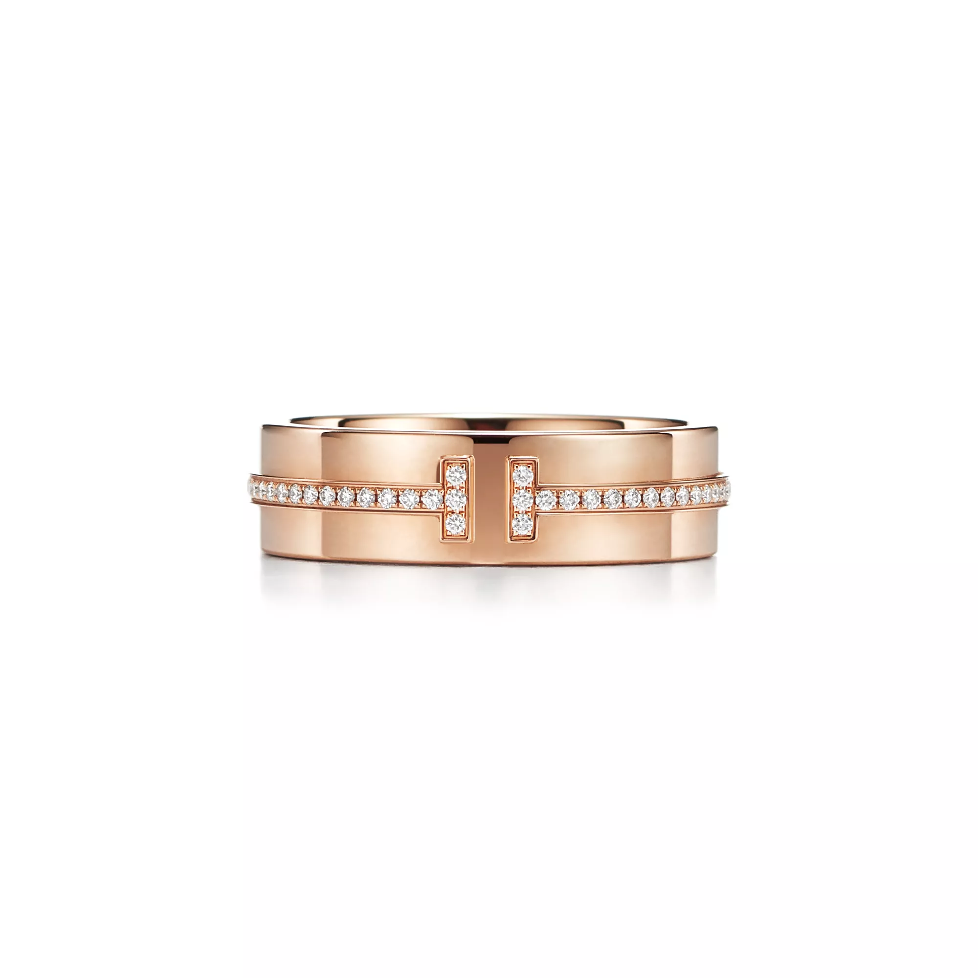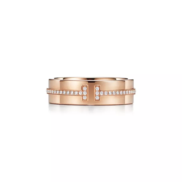Tiffany T Anillo de diamantes ancho de oro rosa